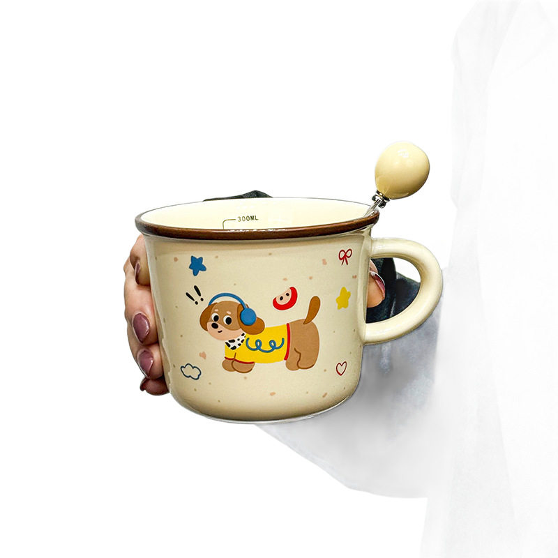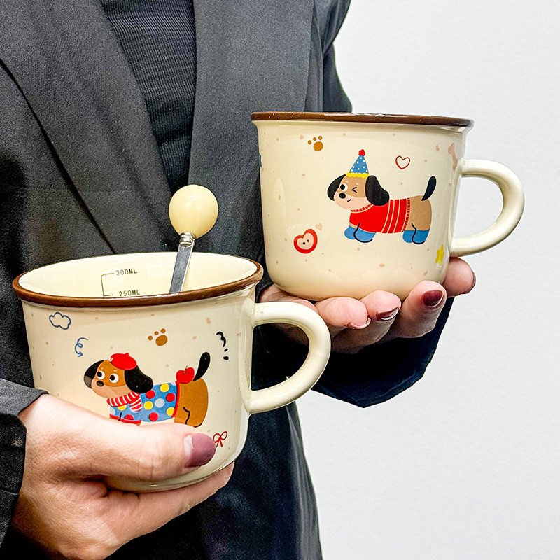 言仓线条小狗马克杯陶瓷水杯实用儿童女生情侣新年生日礼物