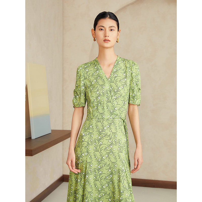 【真丝系列】YINER音儿2025夏季新款弹力法式印花茶歇裙连衣裙