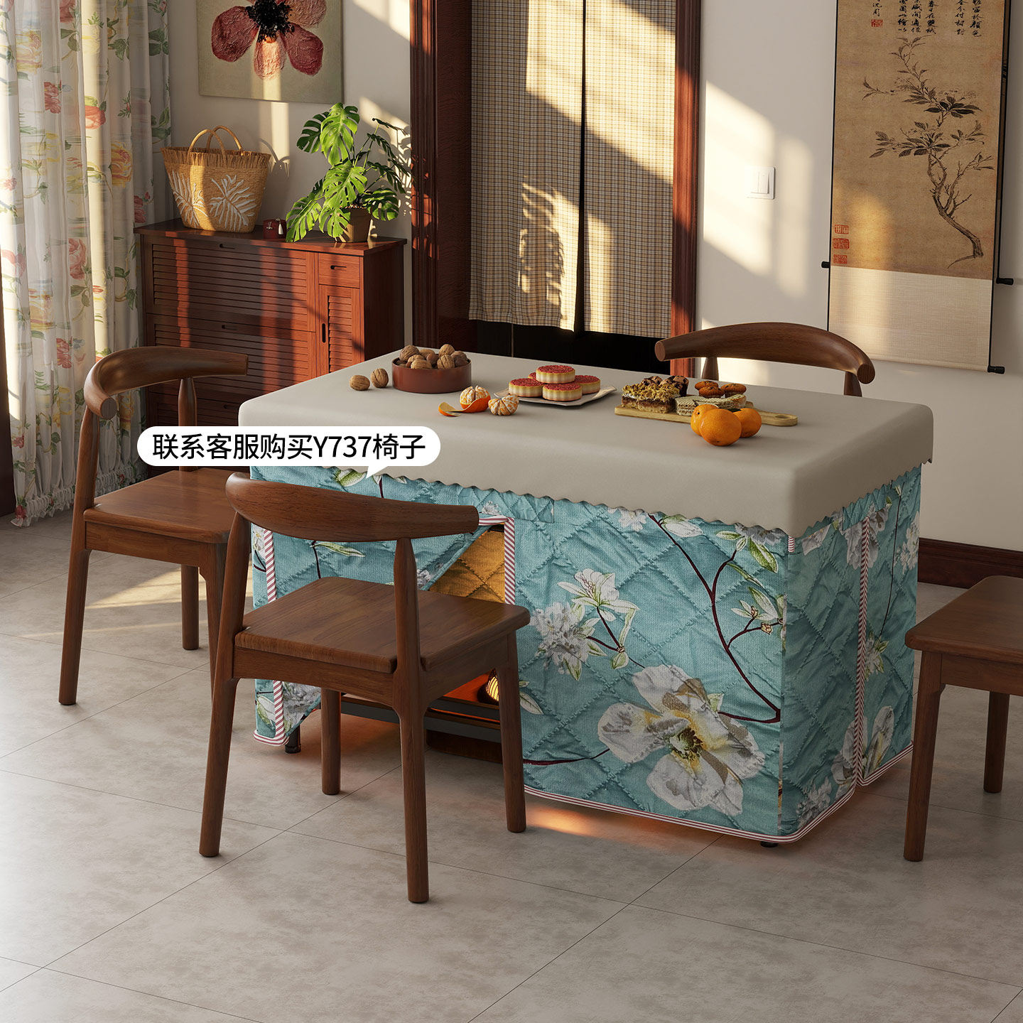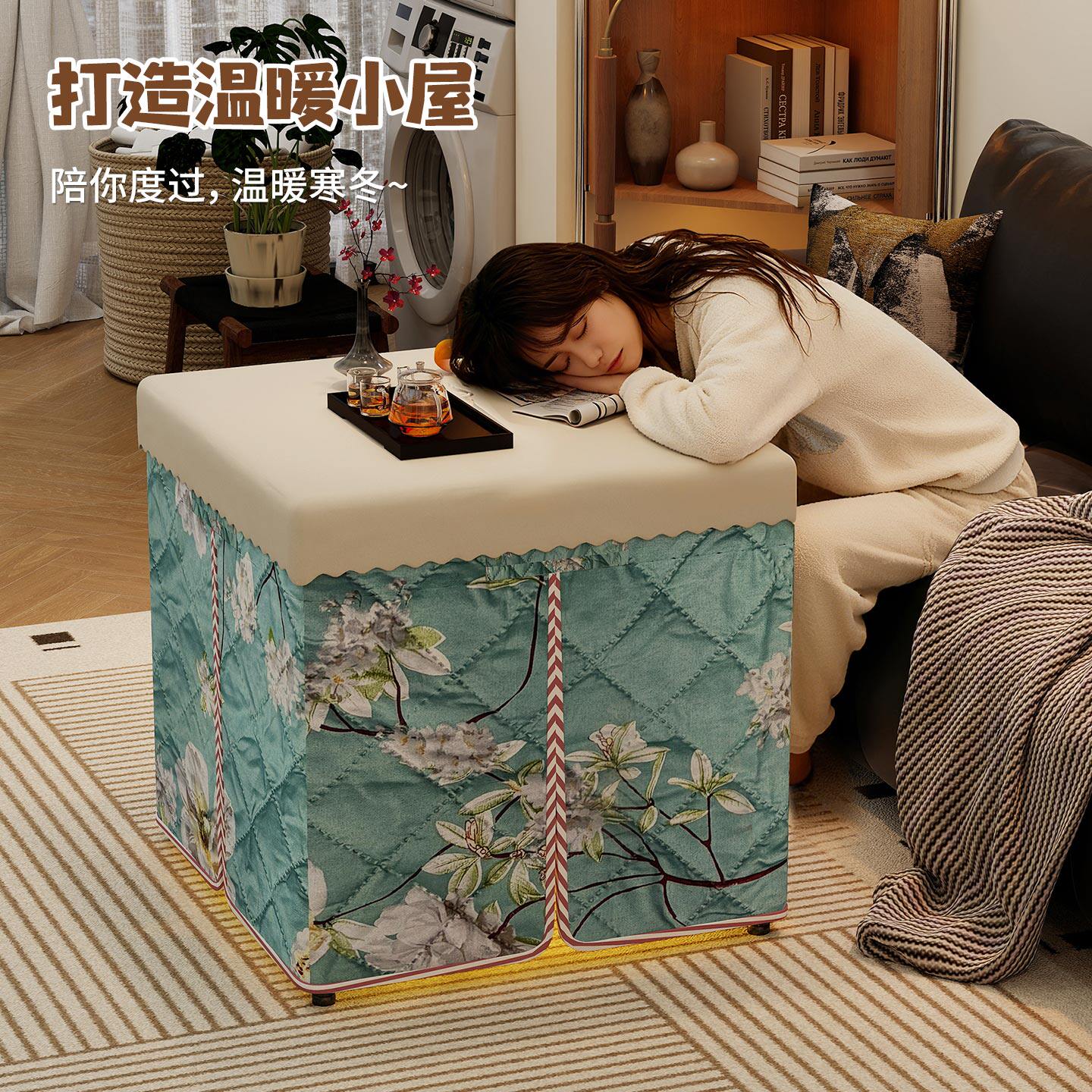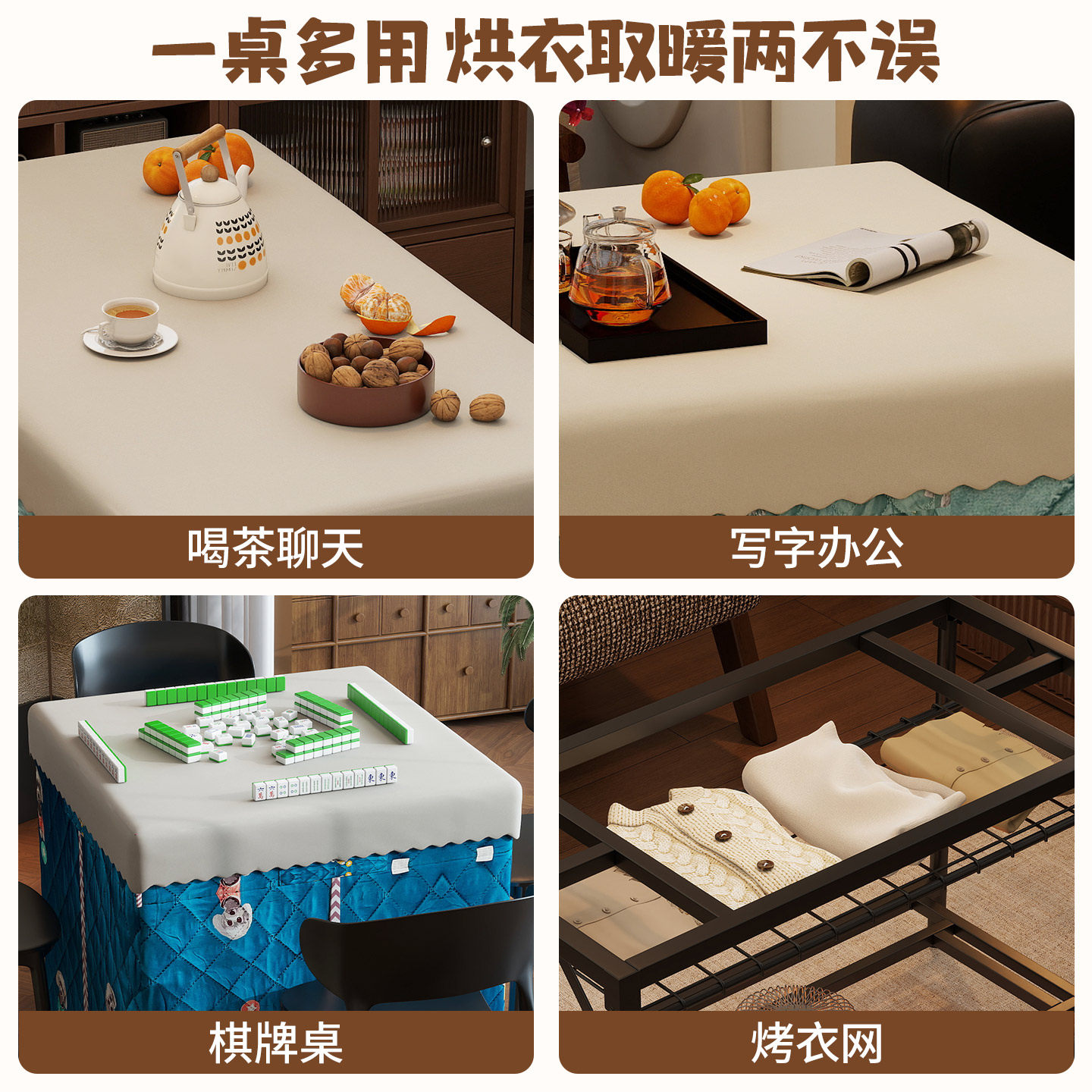 烤火桌家用取暖桌简易小型长方形写作业冬季农村吃饭烤火一体餐桌