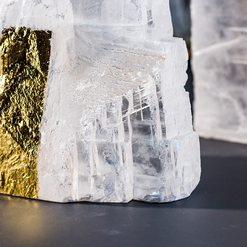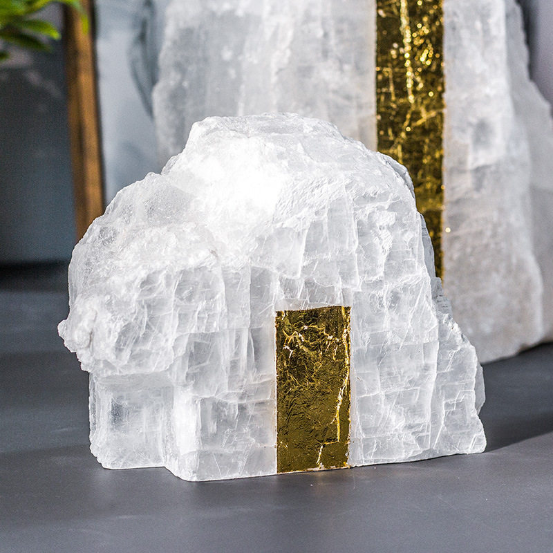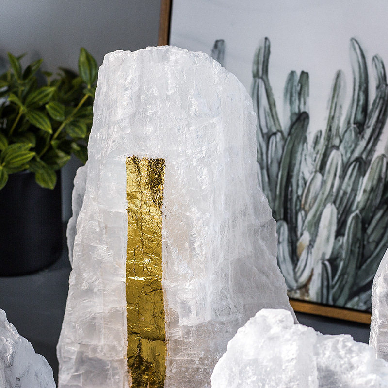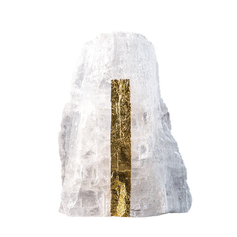 新中式桌面山峰摆件天然晶石金箔山客厅玄关假山装饰软装轻奢摆件