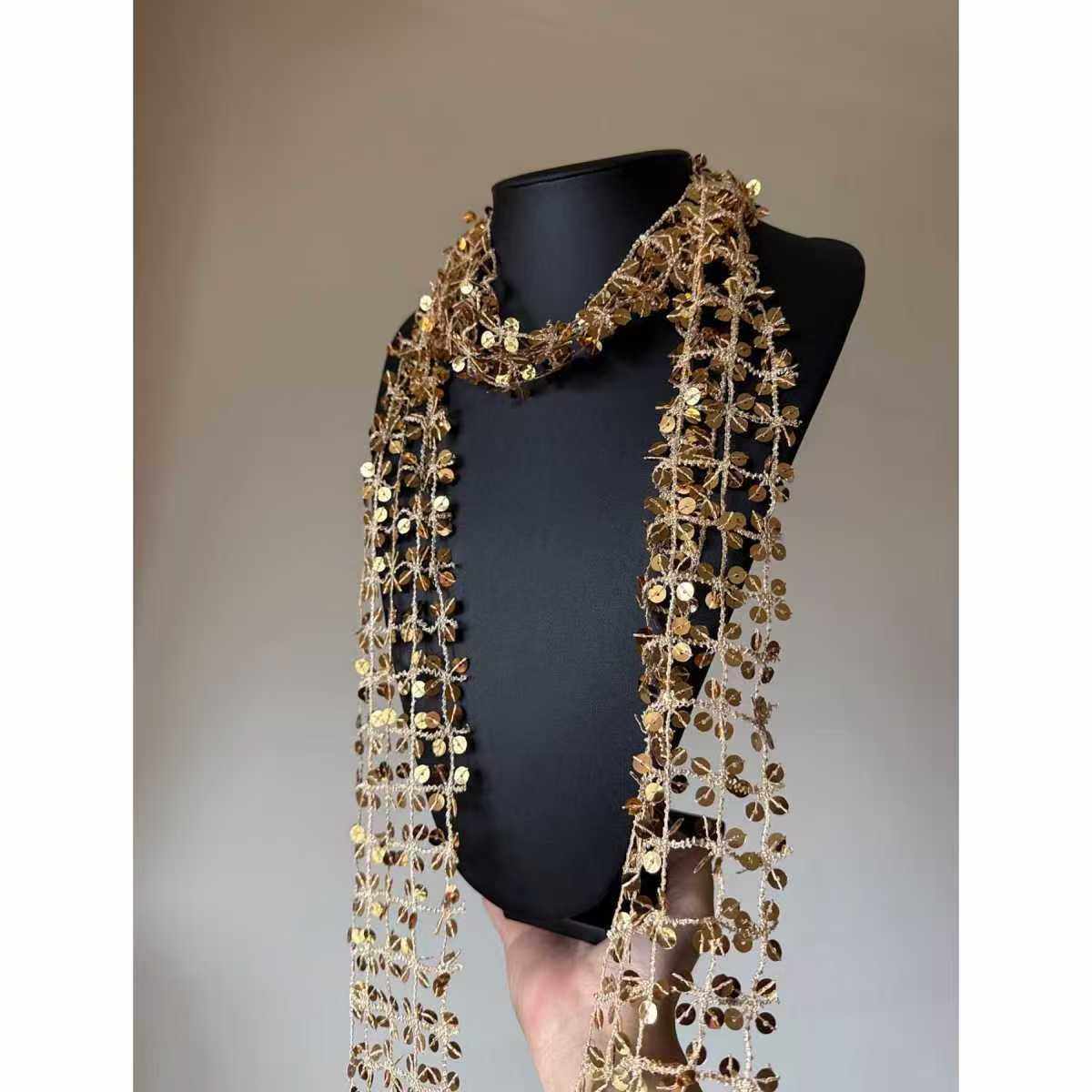 欧美风个性设计亮片围巾潮流风辣妹街头穿搭多色编织镂空项链时尚