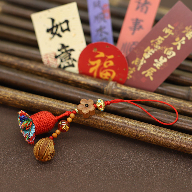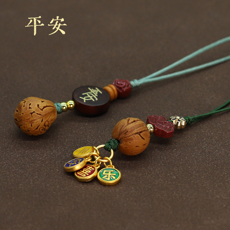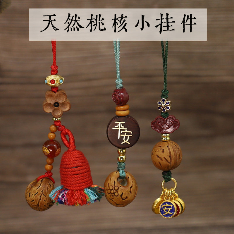 桃核雕刻手机挂绳保平安吊坠创意男女款紫金砂包钥匙扣U盘小挂件