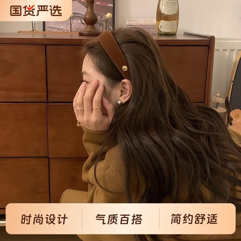 中古感金扣丝绒发箍女2025新款外出洗脸简约发卡韩国头箍发饰头饰