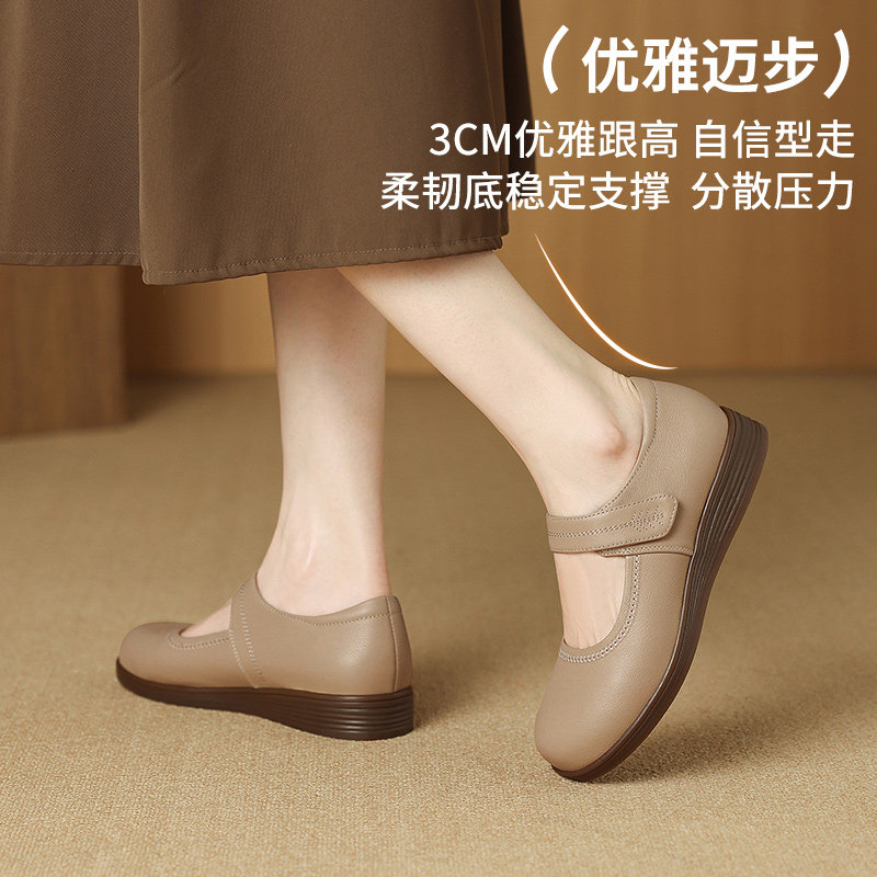 真皮~骄屿法式内增高浅口单鞋2026新款小香风一脚蹬通勤玛丽珍鞋