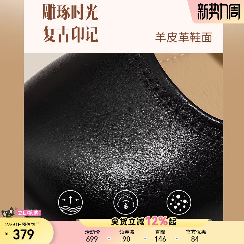 【明星同款|静音系列】千百度练习曲裸色高跟鞋真皮通勤法式单鞋