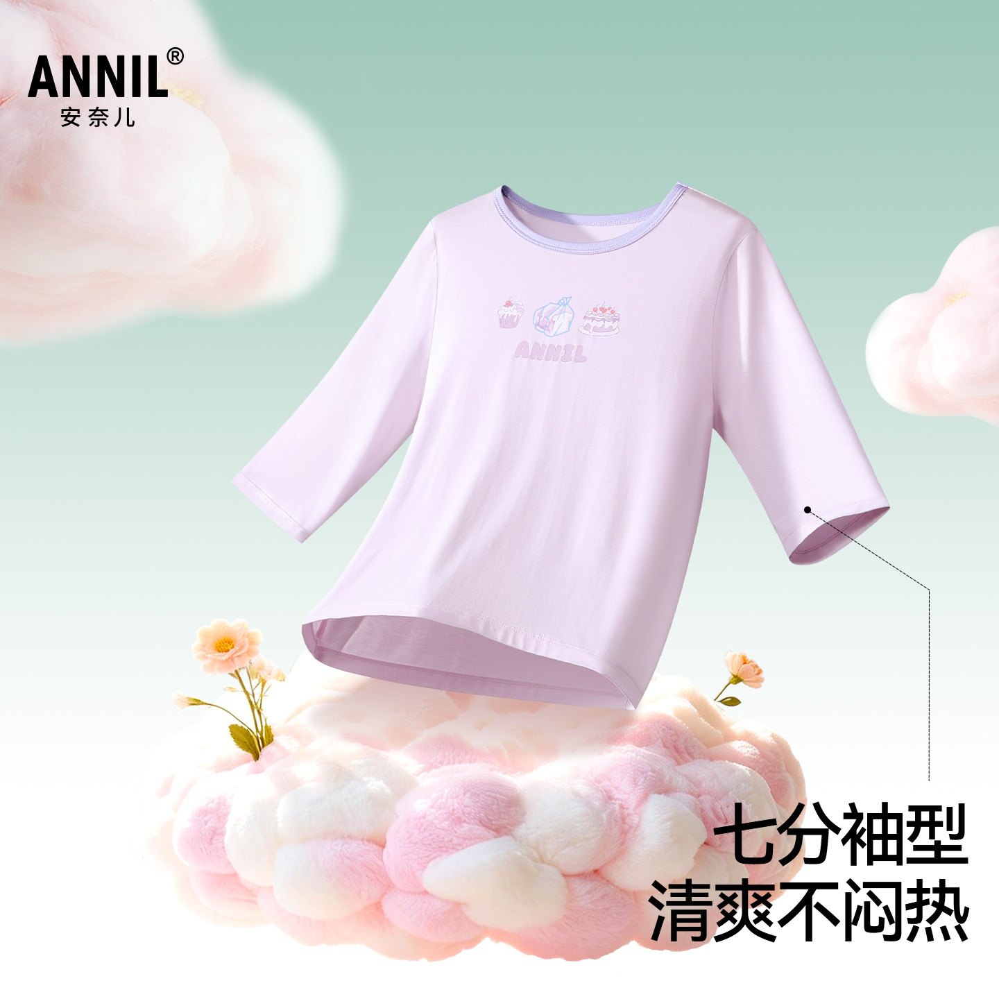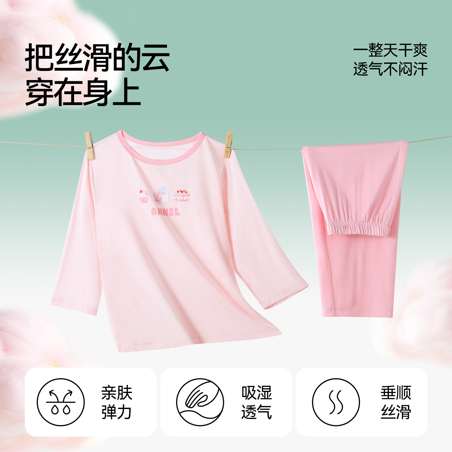 安奈儿童装女童圆领七分袖家居套装2026夏新款宽松弹力睡衣睡裤