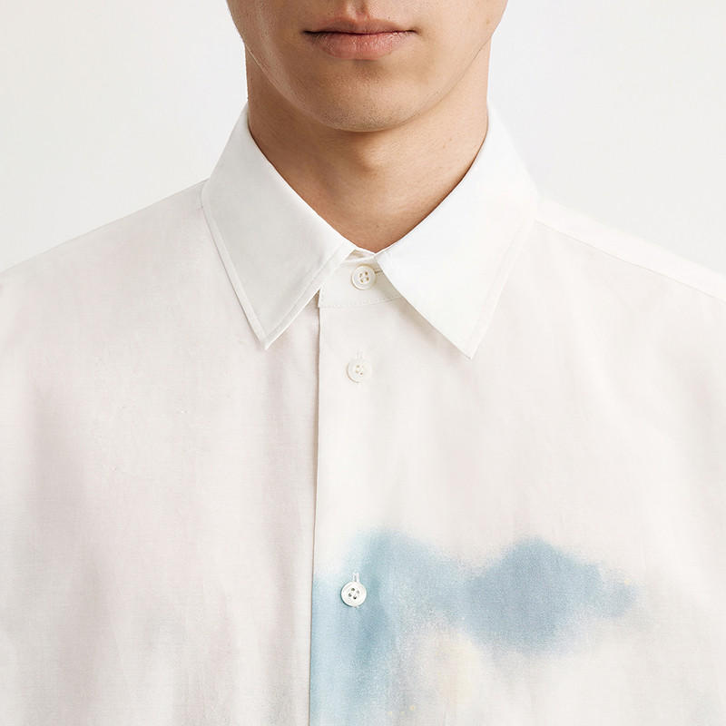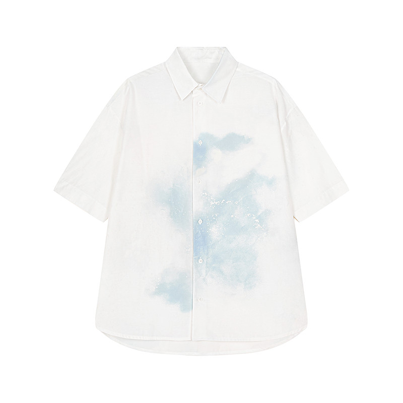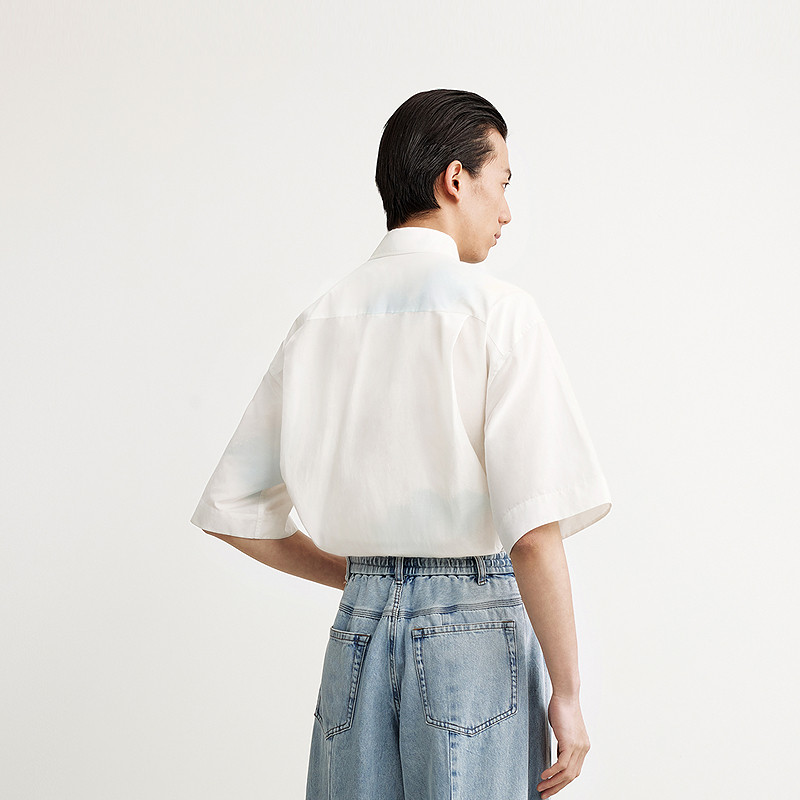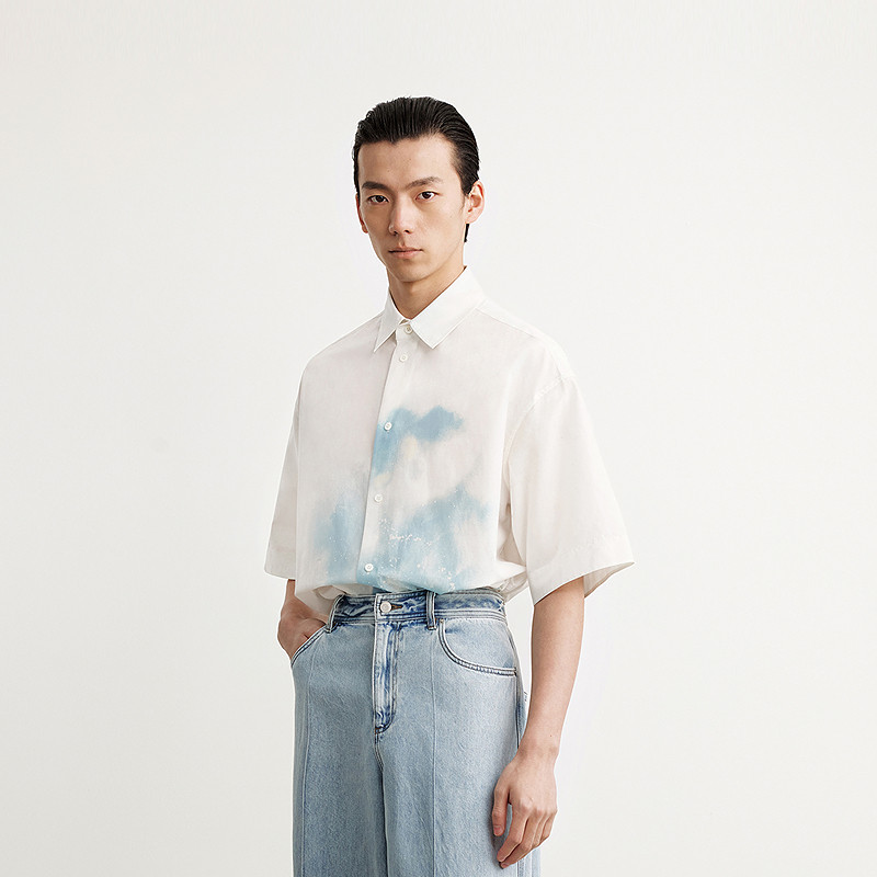 速写男装夏季新款男士衬衫短袖衬衣宽松晕染衬衫舒适度假感休闲