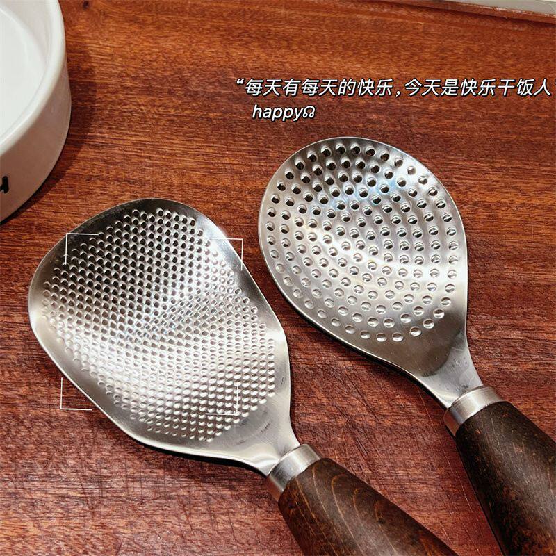 可立式304不锈钢饭勺家用铲饭勺子不粘米饭木饭勺食品级盛饭国货