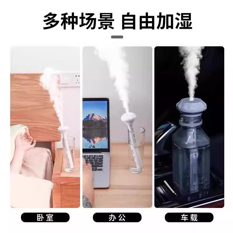 zaiwan矿泉水瓶加湿器usb充电小型迷你卧室家用静音补水大喷雾学生宿舍办公室桌面空气雾化旅行便携车载汽车