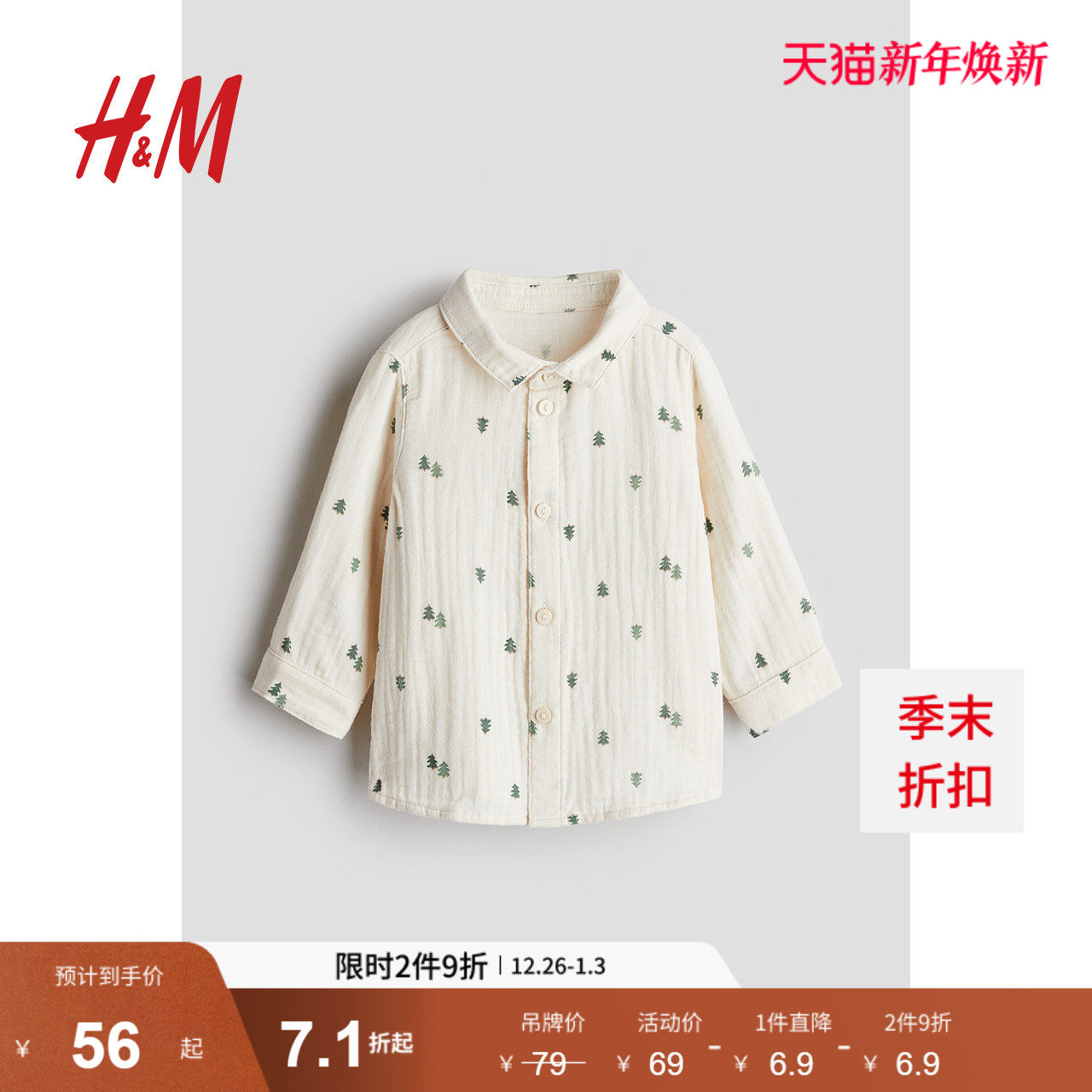 HM童装男婴衬衫冬季翻折领洋气红色帅气长袖上衣1253538