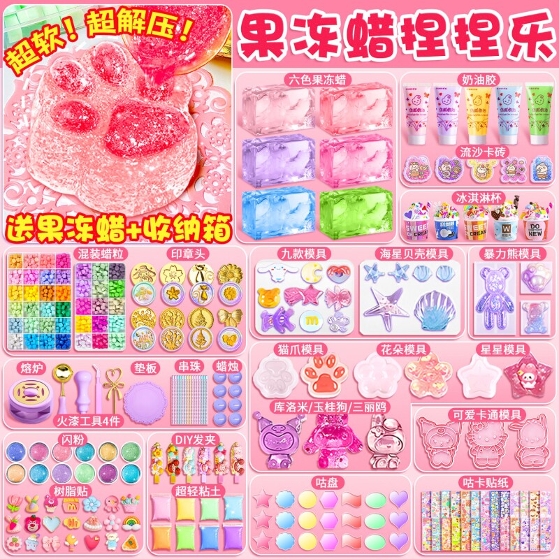 捏捏乐diy材料包硅胶果冻蜡过家家解压套装模具儿童手工女孩玩具