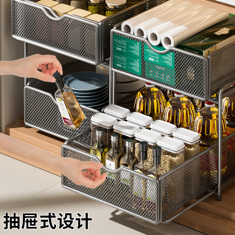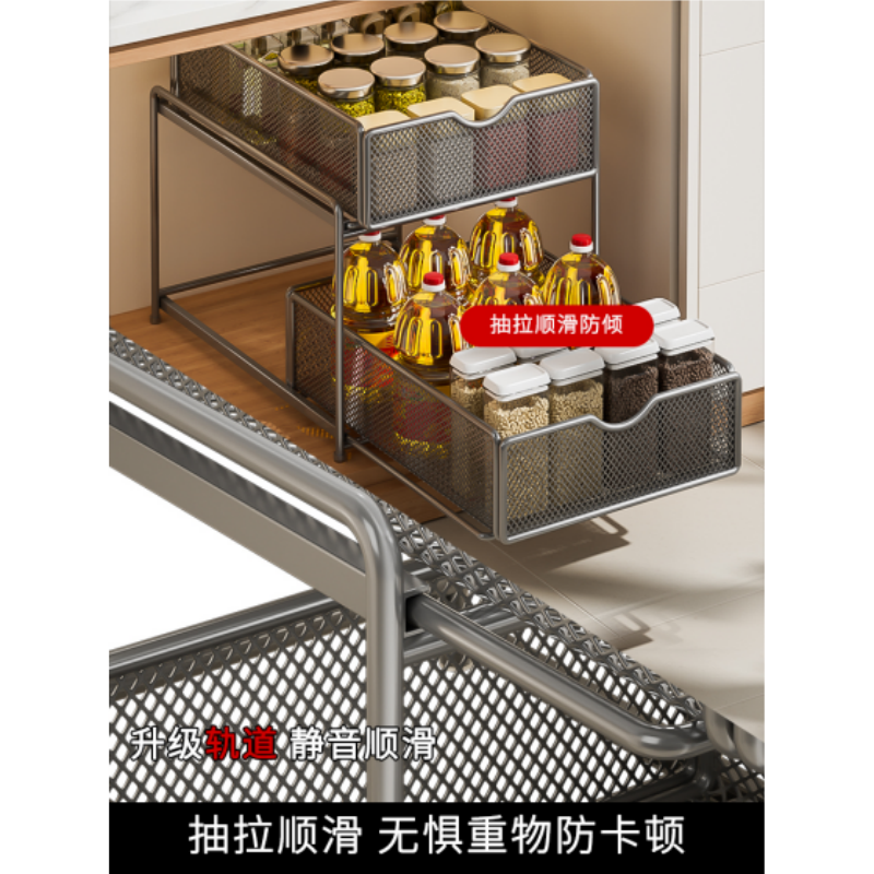 厨房抽拉式置物架下水槽双层橱柜内分层架子超深抽屉拉篮收纳神器