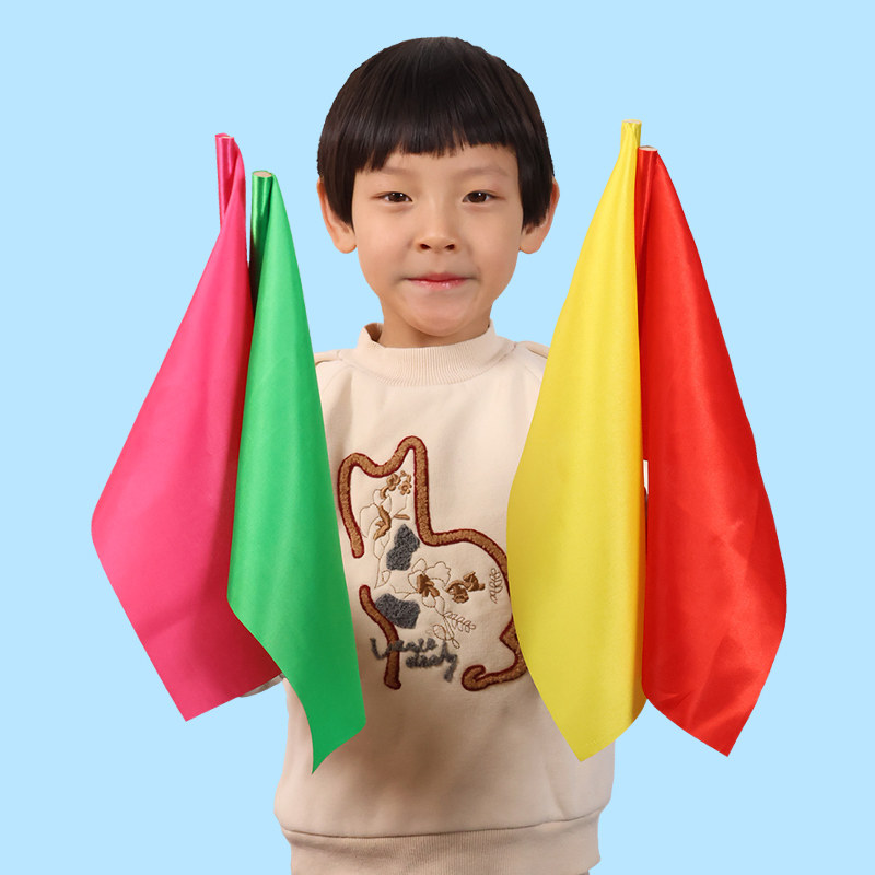 幼儿园课间操早操道具儿童小彩旗舞蹈表演红旗运动会活动手摇旗帜批发五彩小旗带杆红黄蓝粉绿