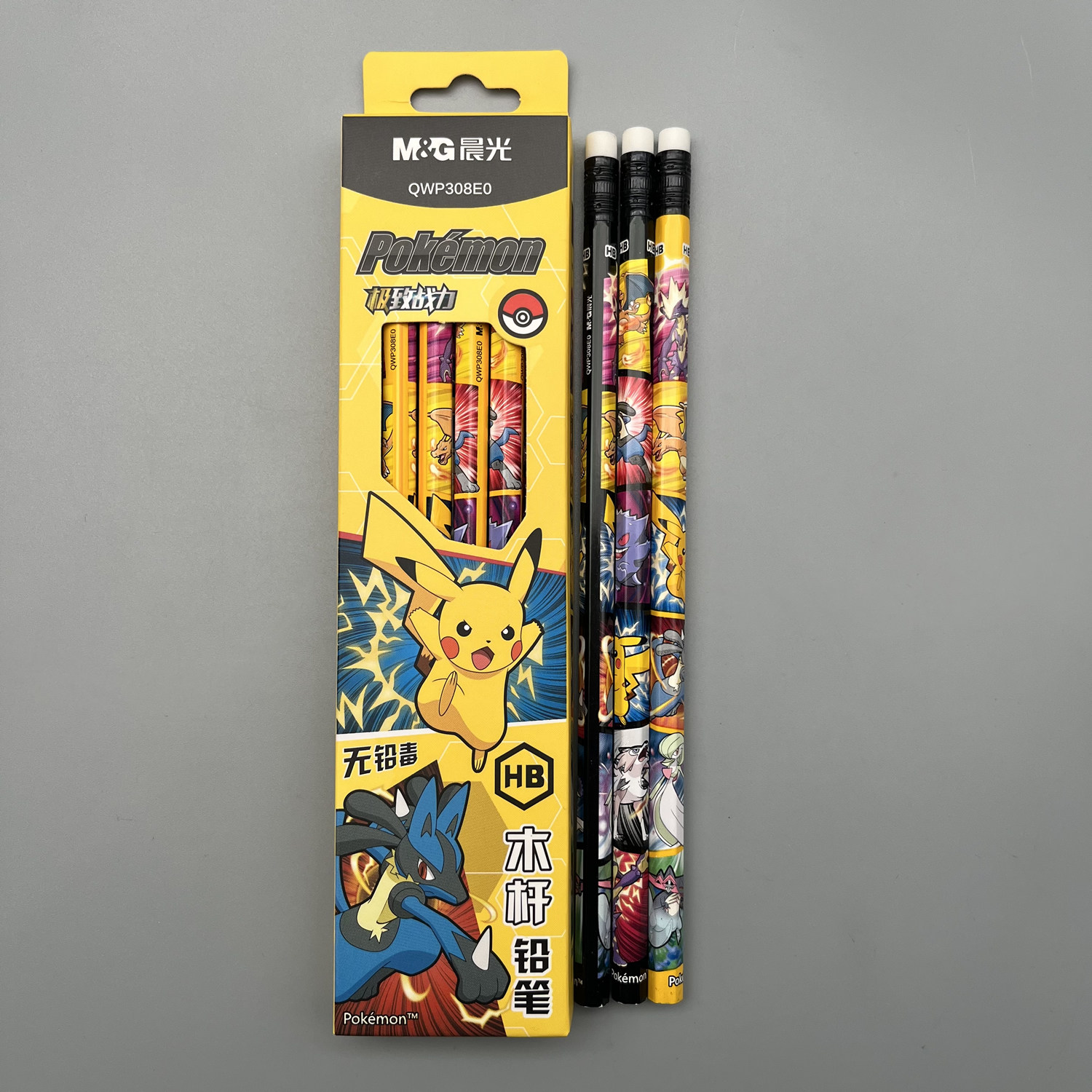 晨光极致战力皮卡丘木杆铅笔HB安全小学生用写字练字作业画画考试办公高颜值自带橡皮QWP308E0