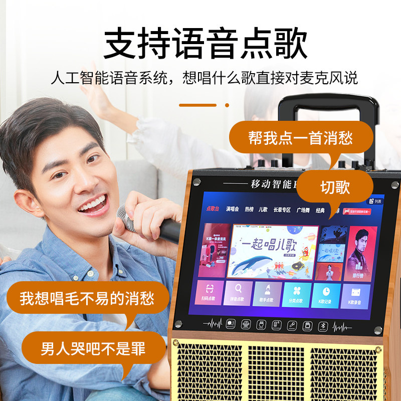 华宝广场舞音响带显示屏户外跳舞K歌音箱家用ktv一体机话筒麦克风