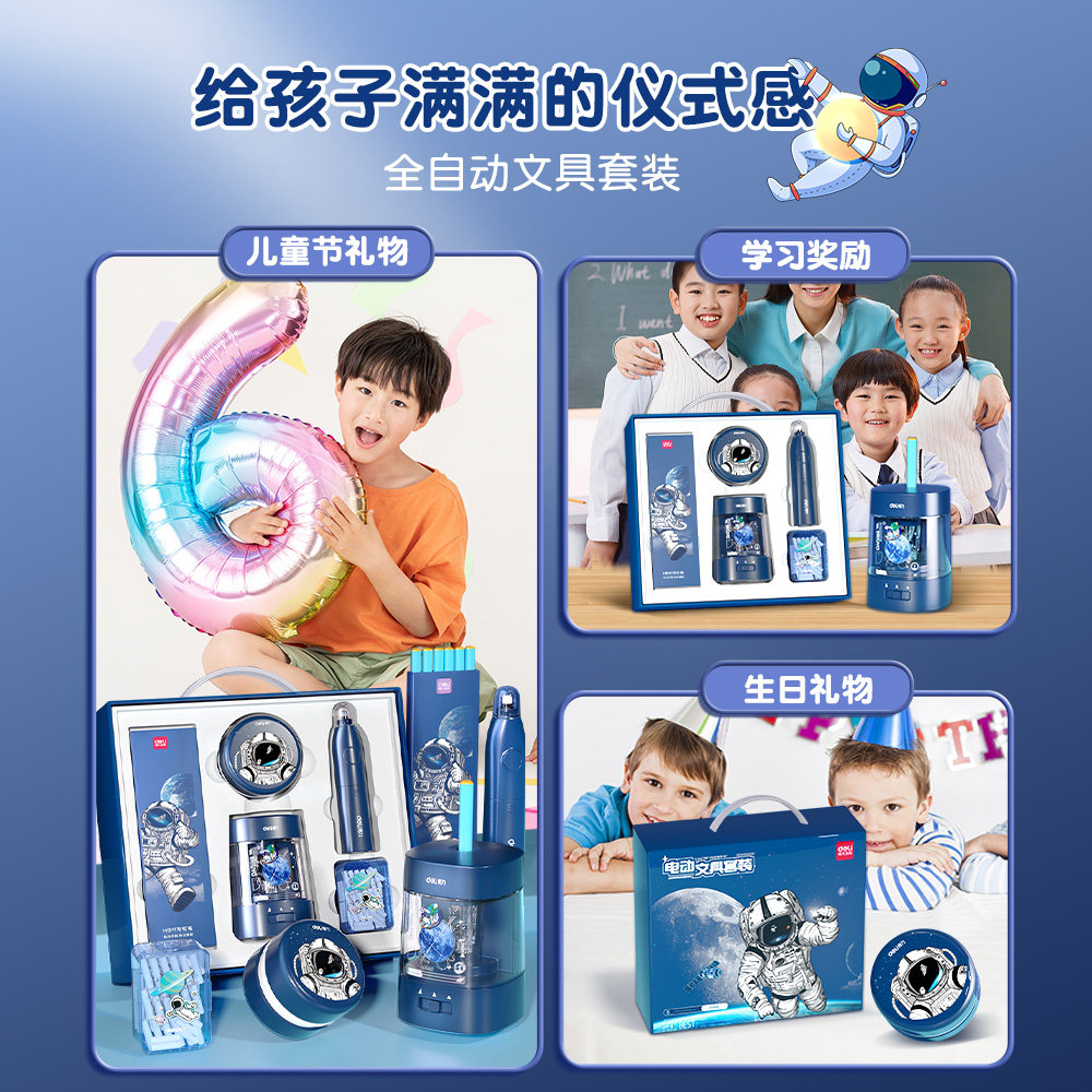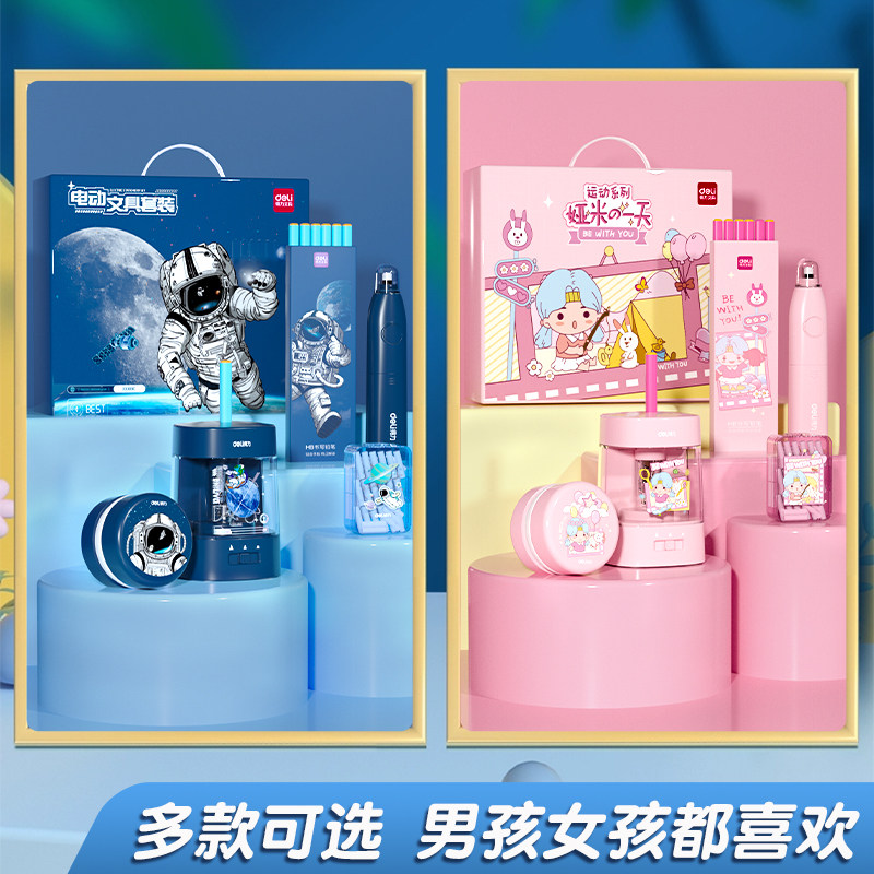 得力新年生日礼物电动文具套装新年礼盒10岁小学生奖励一年级学习用品男孩必备女孩儿童学习用品大礼包幼儿园