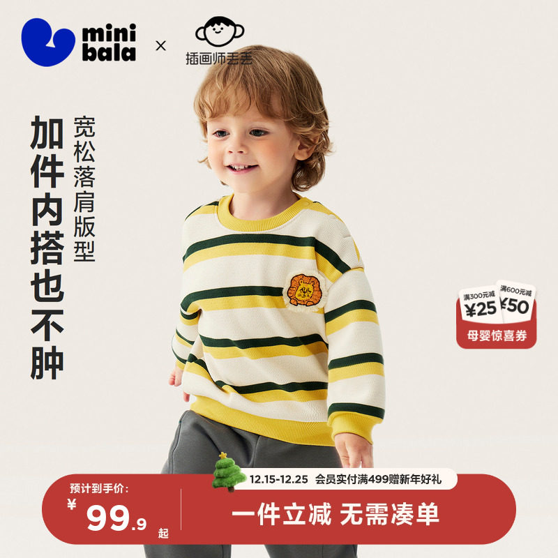 迷你巴拉男童宝宝毛衣柔软亲肤内里加绒保暖萌趣上衣2025冬新款