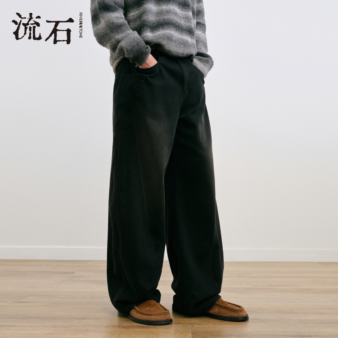 流石男装耐磨水洗加厚保暖牛仔裤2026年冬季男士宽松阔腿加绒长裤
