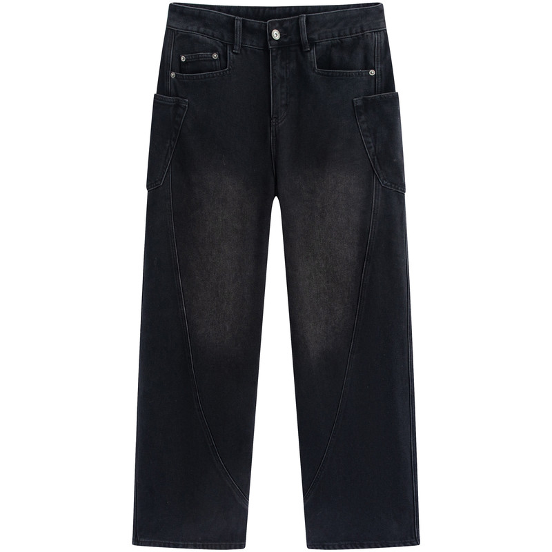 RAPPEYE 国潮设计感复古美式高街宽松显瘦直筒侧袋弯刀阔腿牛仔裤