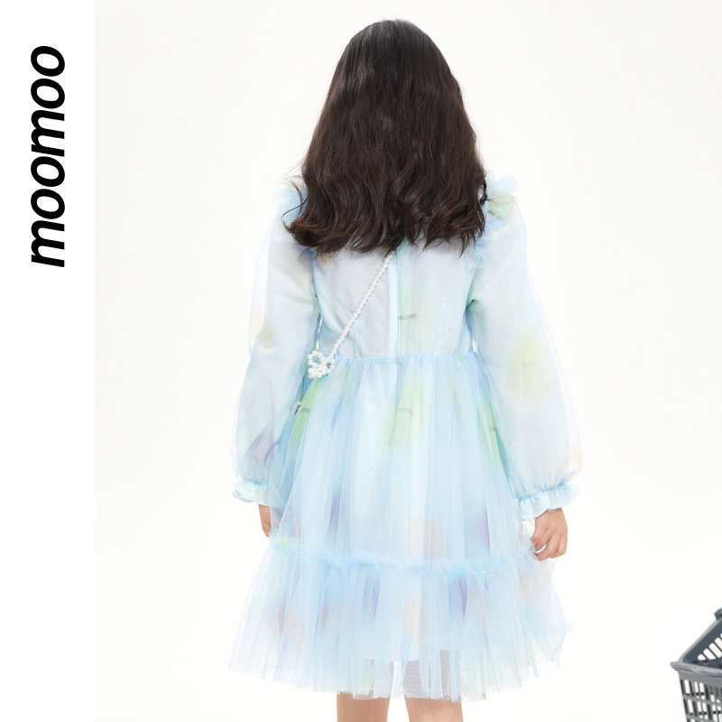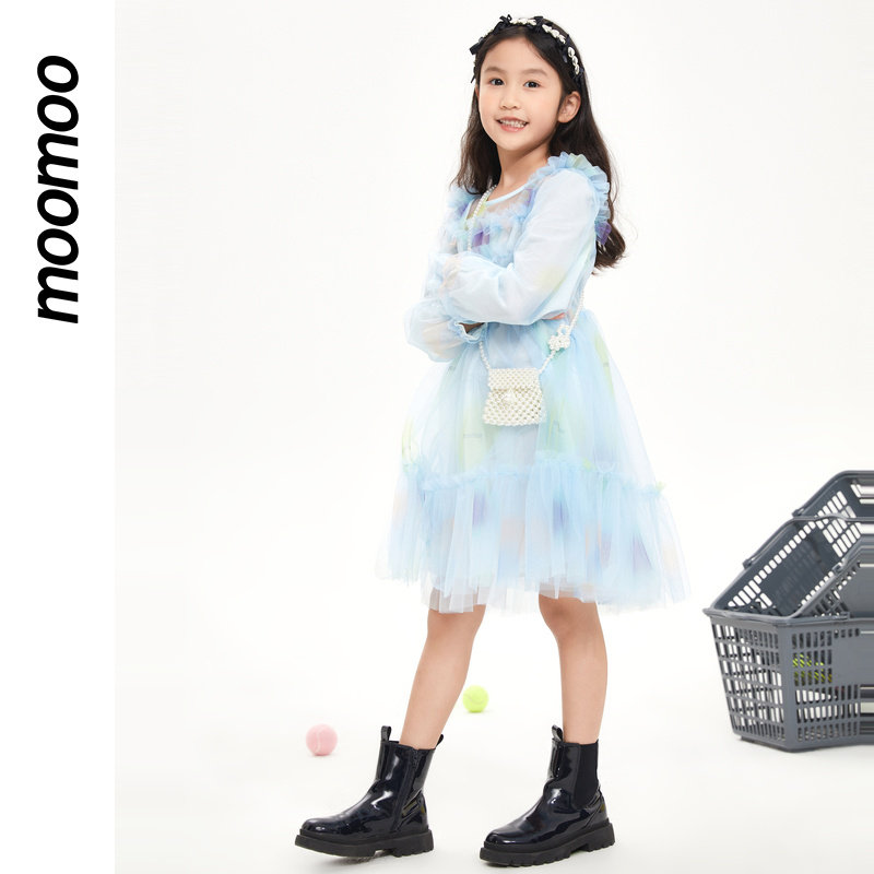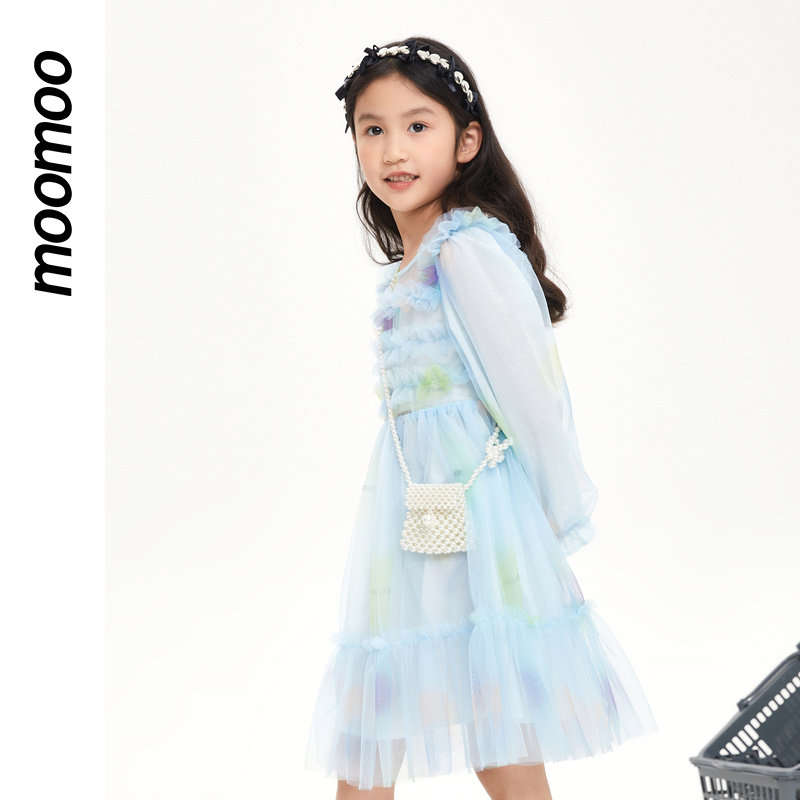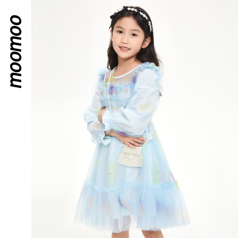 moomoo童装春季新款女童甜美可爱网纱女孩连衣裙大童仙女网纱裙
