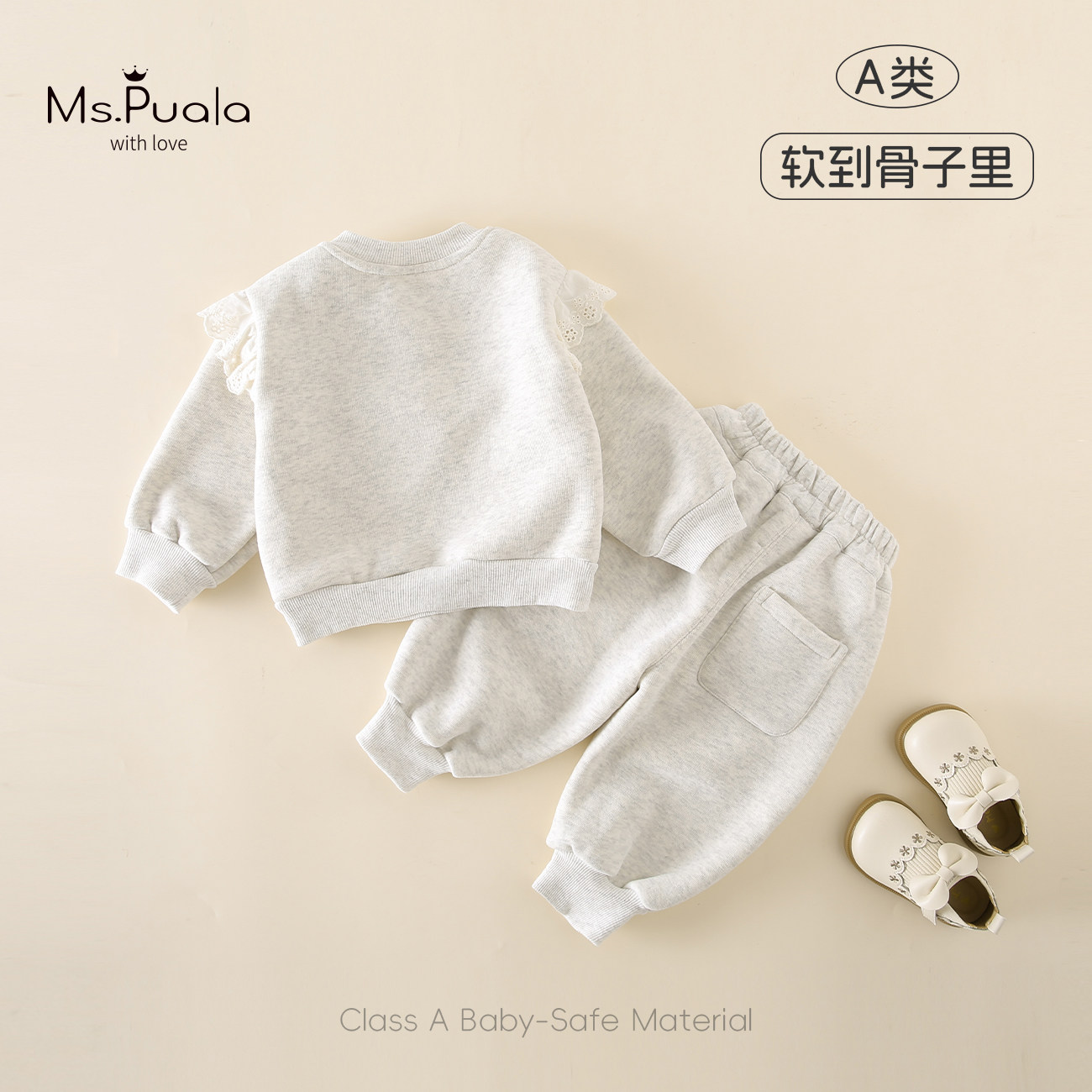 Ms.Puala女童宝宝套装加绒卫衣卫裤童装婴幼儿秋冬舒适两件套套装