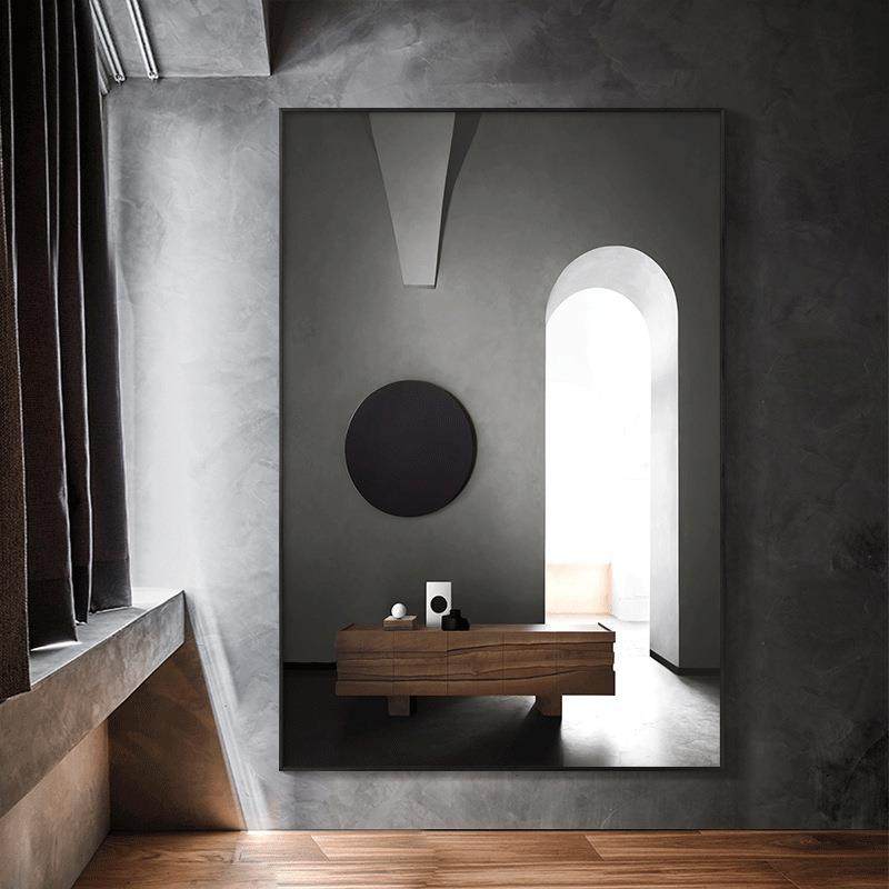 现代简约玄关装饰画极简风格沙发后面的挂画空间延伸艺术建筑壁画