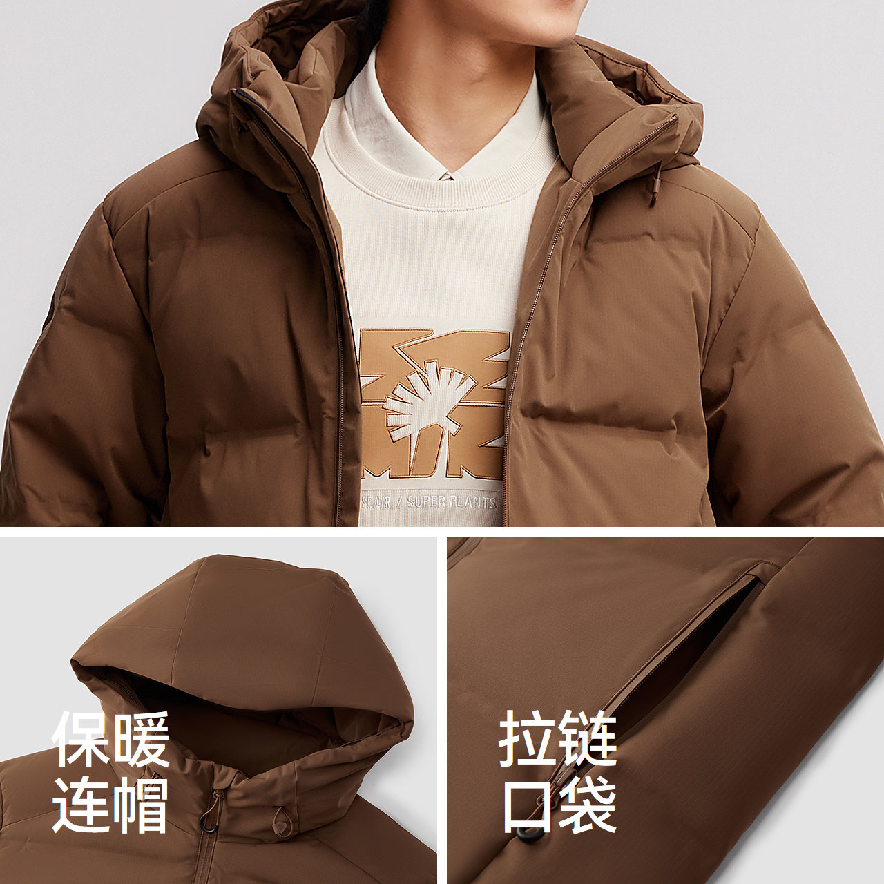 森马羽绒服男无缝压胶连帽外套防泼水户外上衣轻薄款冬装简约休闲