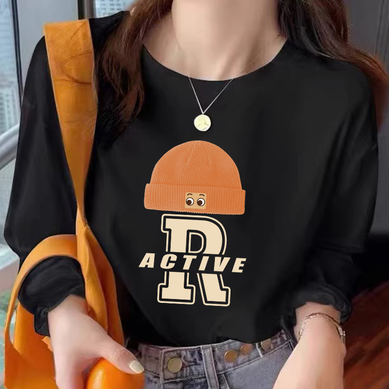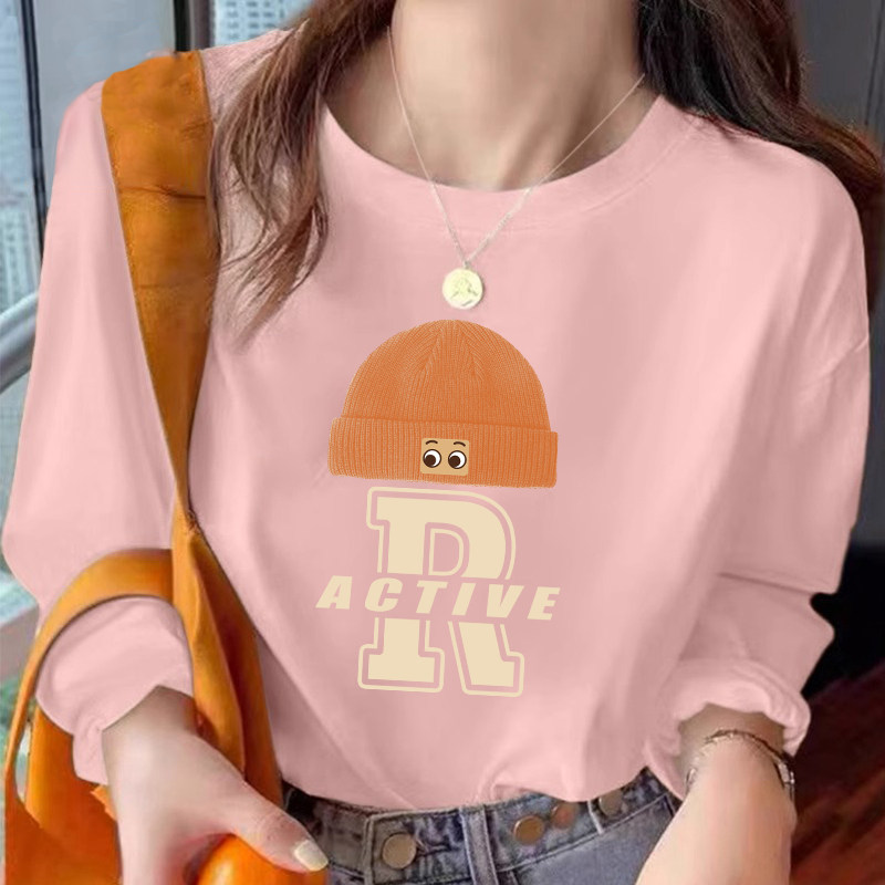 JR真维斯杏色休闲长袖T恤女2025秋秋新款纯棉亲肤百搭时尚感上衣