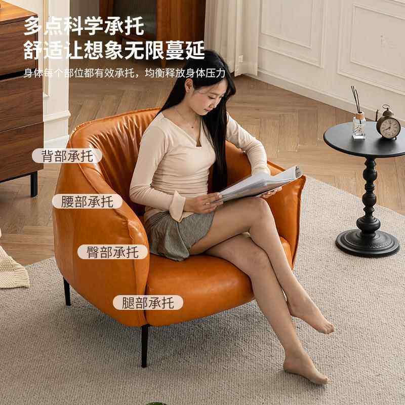 轻奢单人沙发椅家用简约小户型客厅卧室公寓酒店接待皮艺懒人沙发