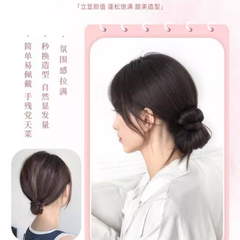 低扎丸子头假发鸡毛头抓夹盘发发包慵懒感造型头饰自然蓬松后脑勺