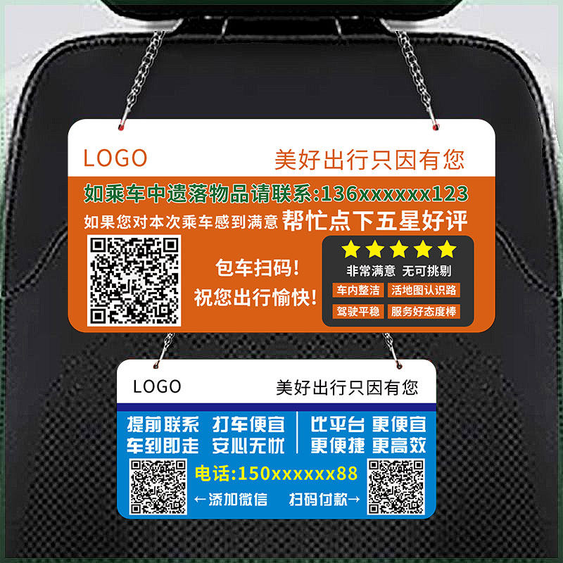 网约车搞笑挂牌出租车五星温馨提示牌滴滴车内打车告示牌亚克力定制电话号码后座二维码广告牌包车评价牌