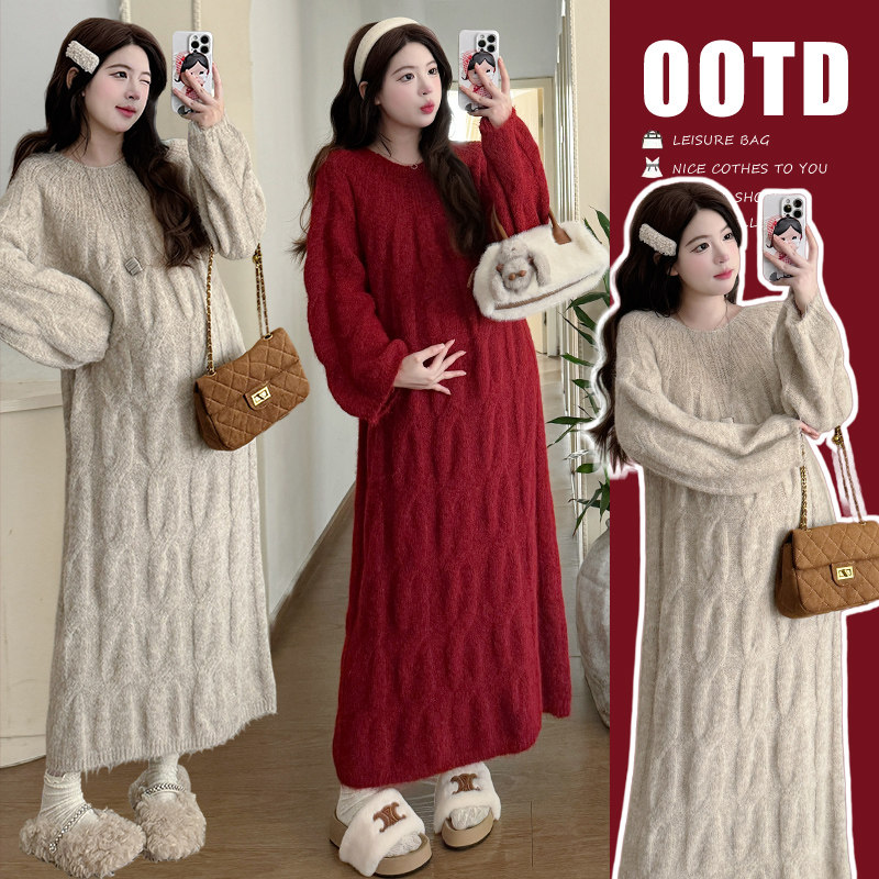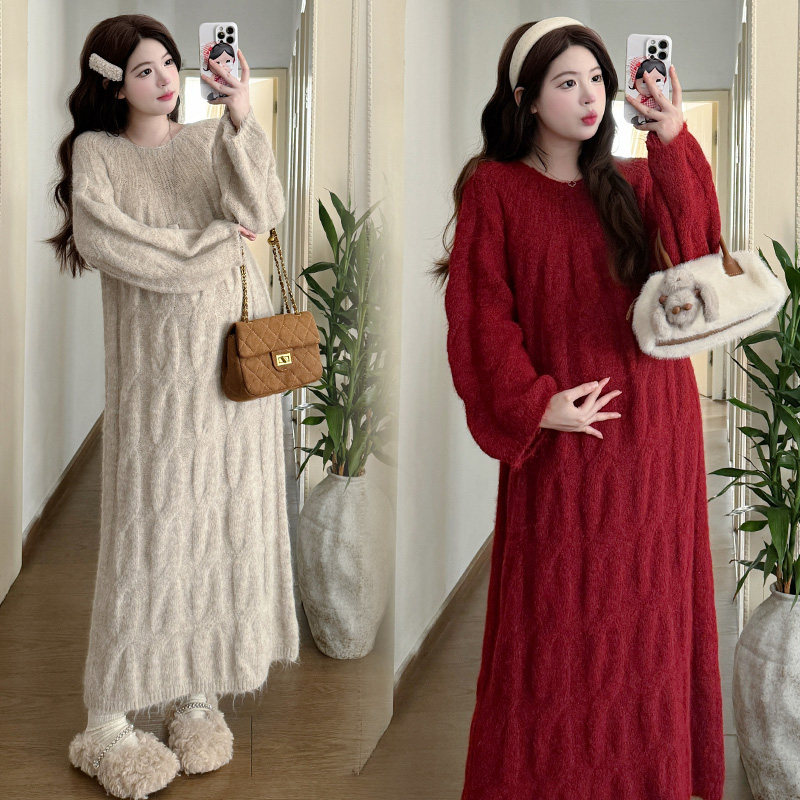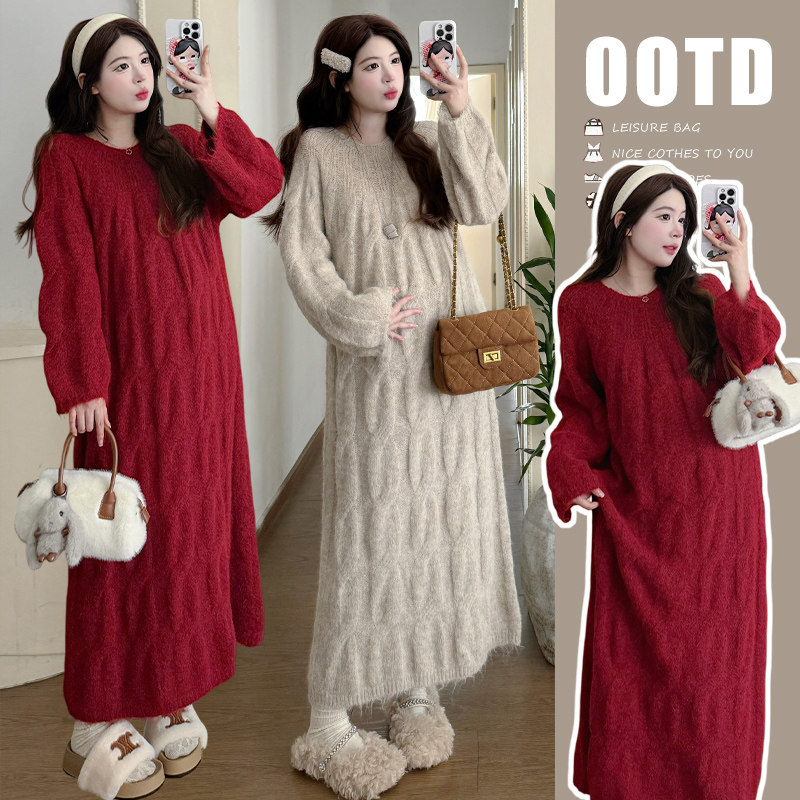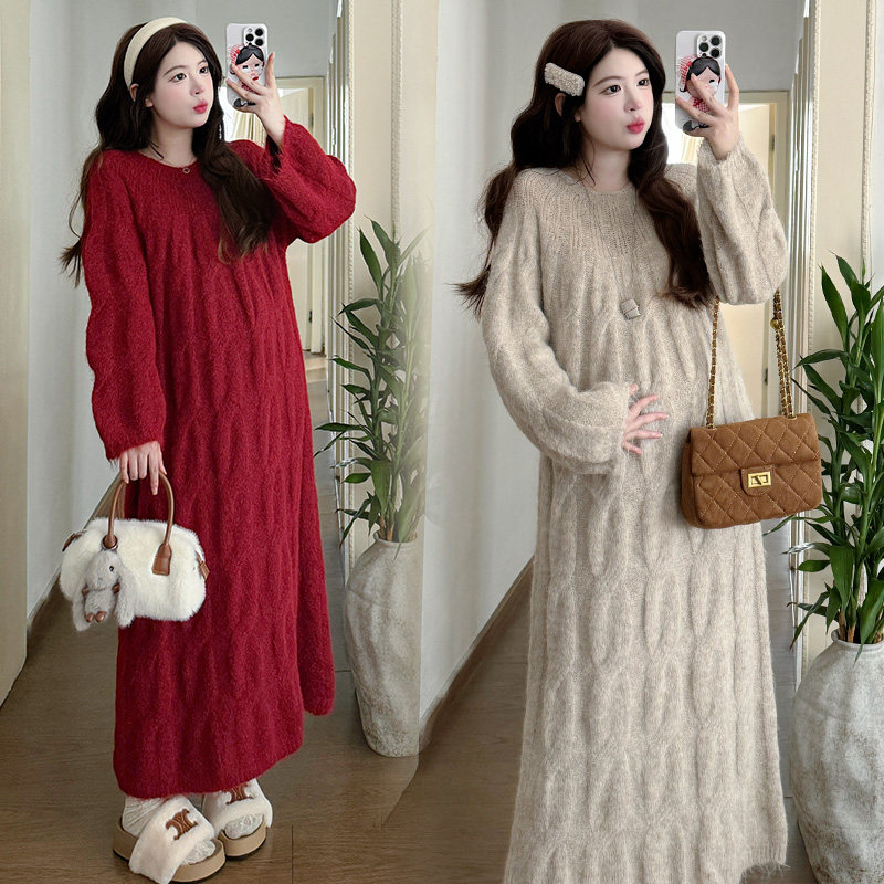婧麒孕妇装冬装孕妇连衣裙孕期新款针织毛衣打底孕妇裙子高级穿搭