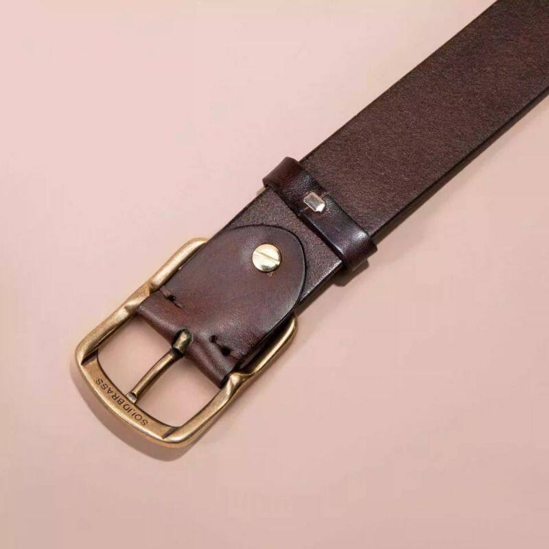 现货男士皮带真皮头层纯牛皮复古铜扣休闲百搭牛仔裤腰带厂家直销