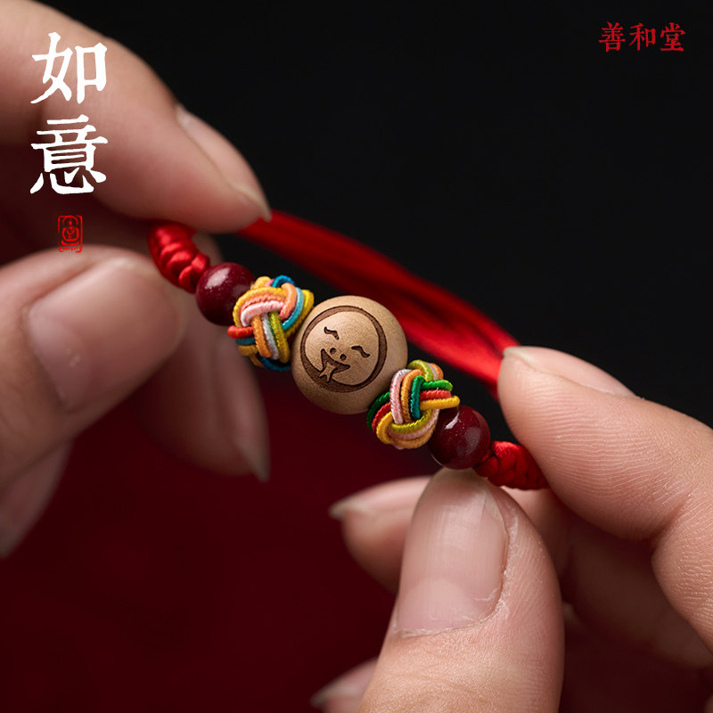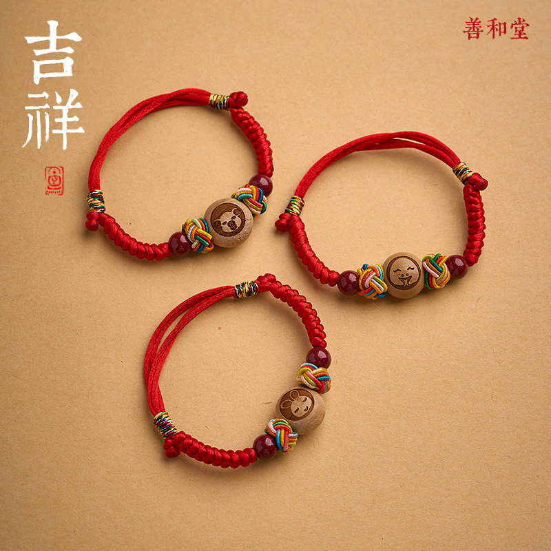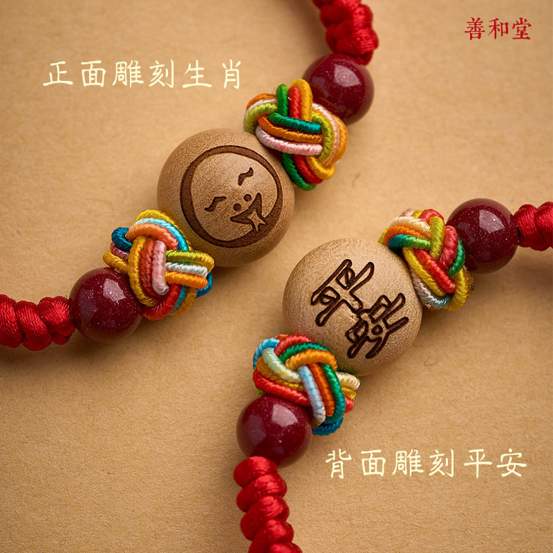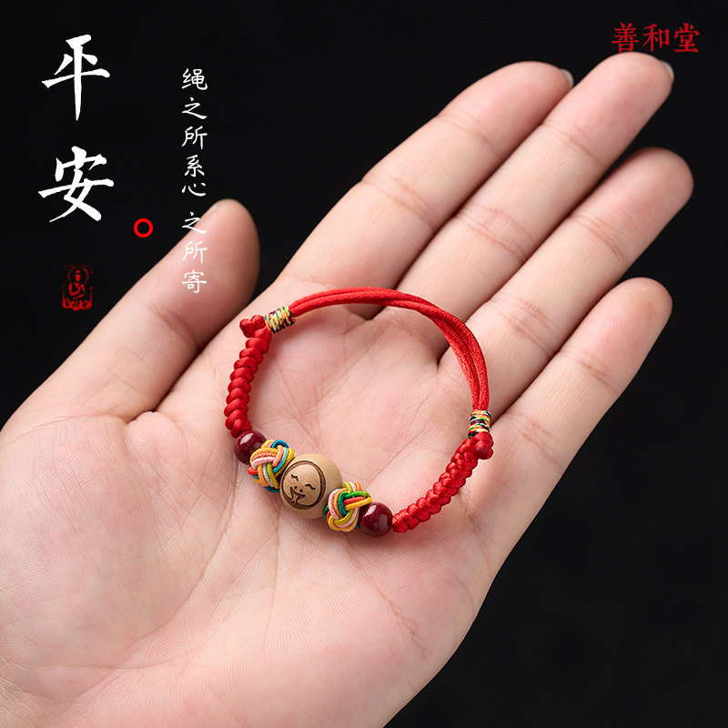 婴儿桃木朱砂护身符手链宝宝红绳本命年手绳脚链儿童五彩绳编织