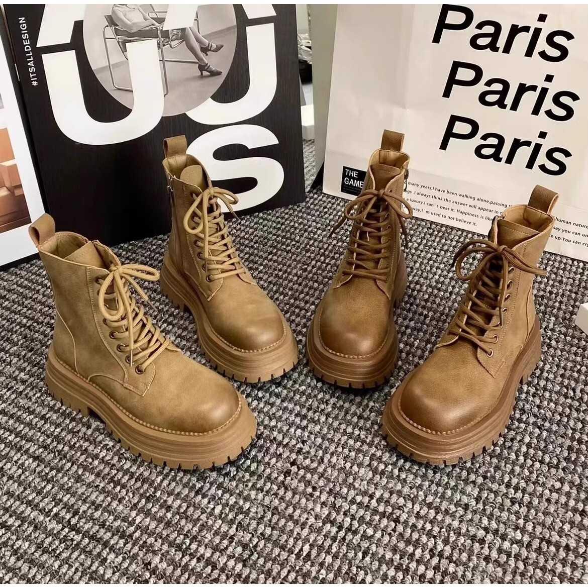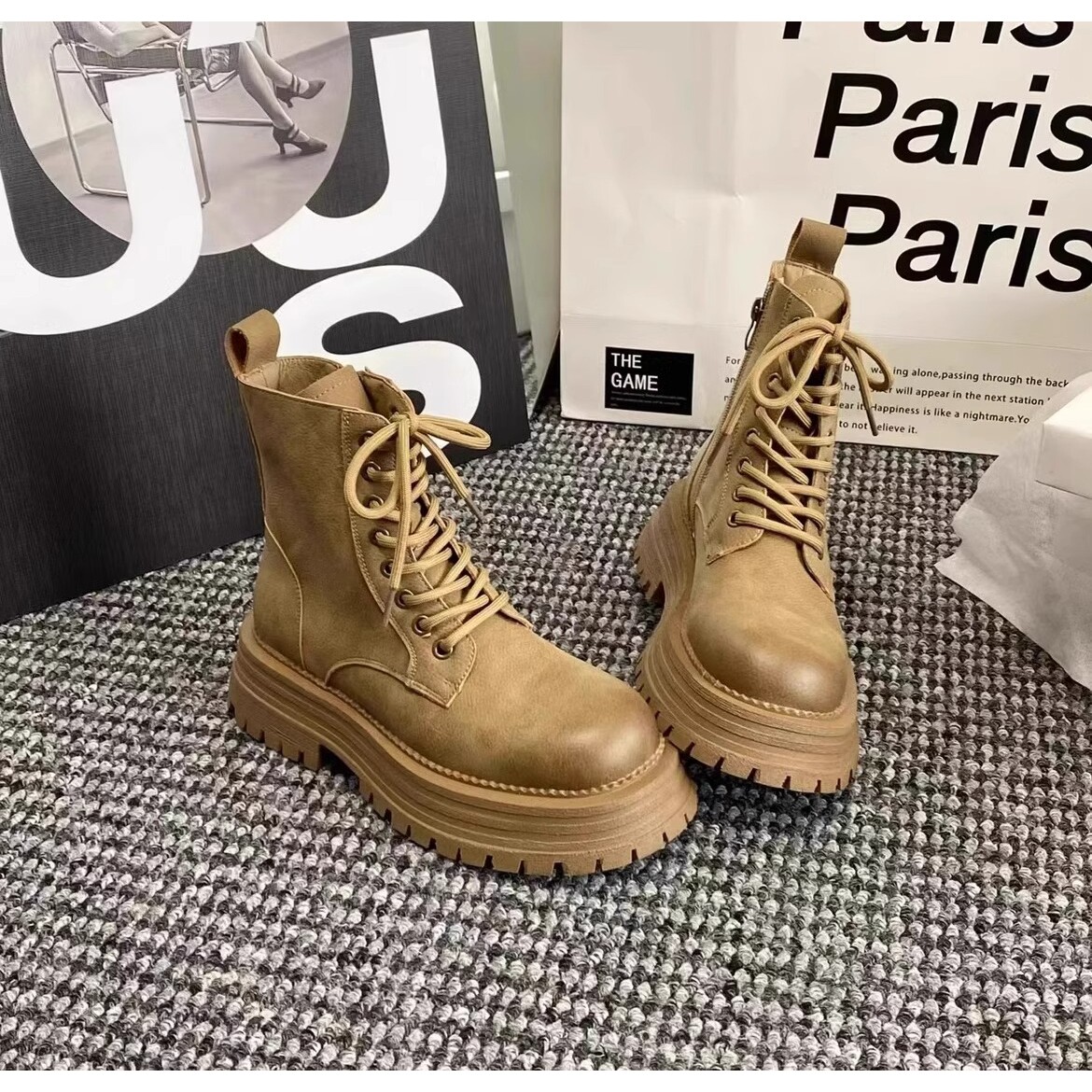 热风圈厚底马丁靴女夏2025新款秋冬复古小个子增高短靴棕色机车靴