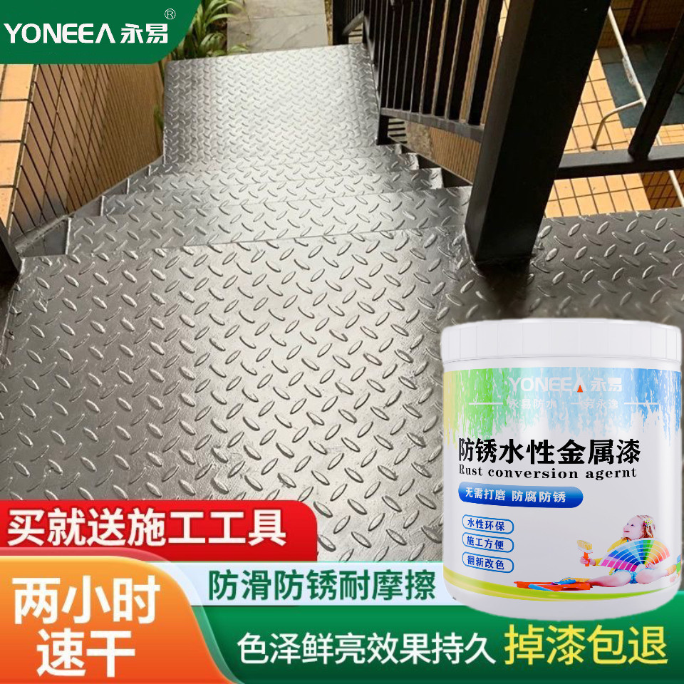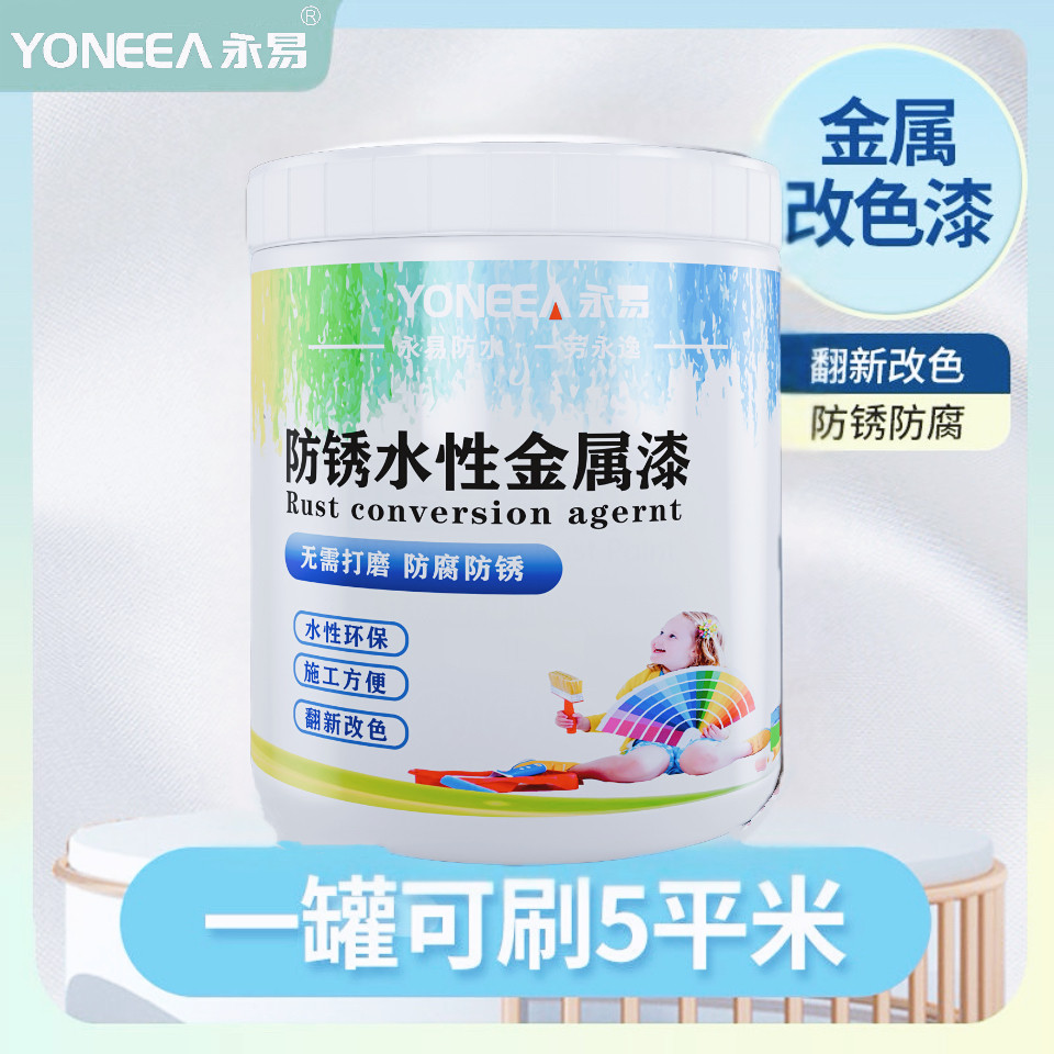 永易水性油漆金属防锈漆防腐家用自刷涂料银粉漆黑色铁门改色油性