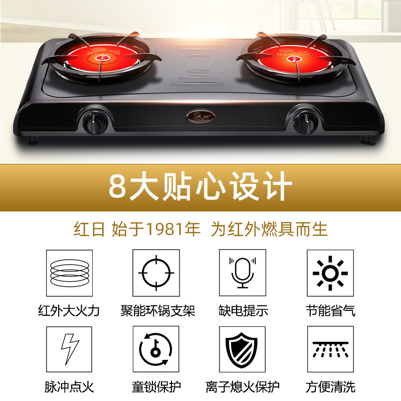 红日煤气灶双灶猛火灶红外线燃气灶台式液化气天然气老式家用灶炉