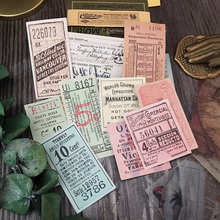 Tim Holtz风 复古车票贴纸 TN手账装饰素材 欧美junk journal手帐