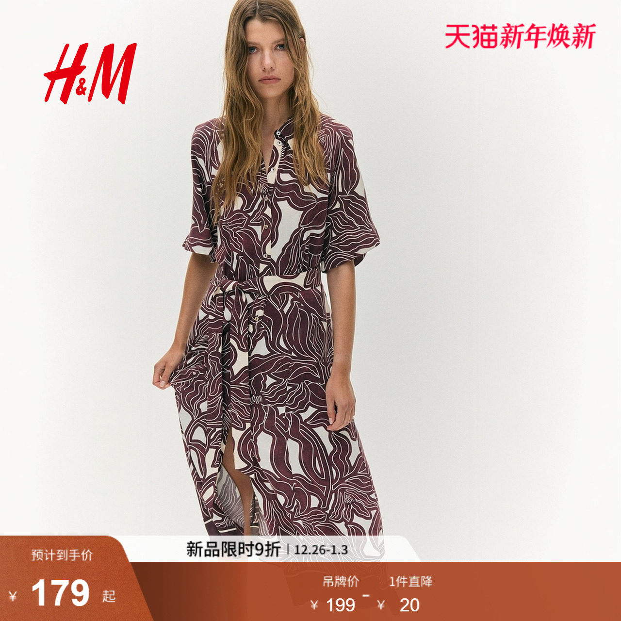 HM女装连衣裙2025年新款酒红色时尚潮流气质精致柔软裙子1217576