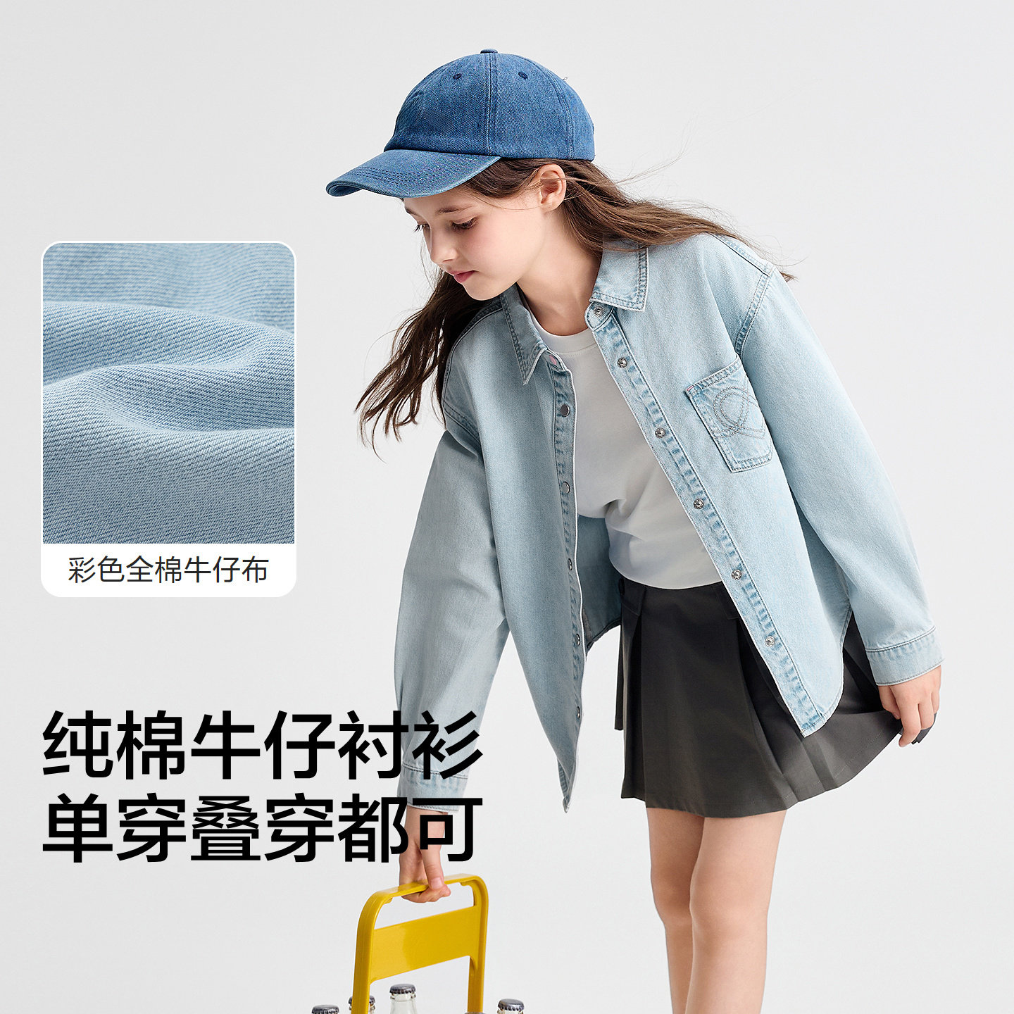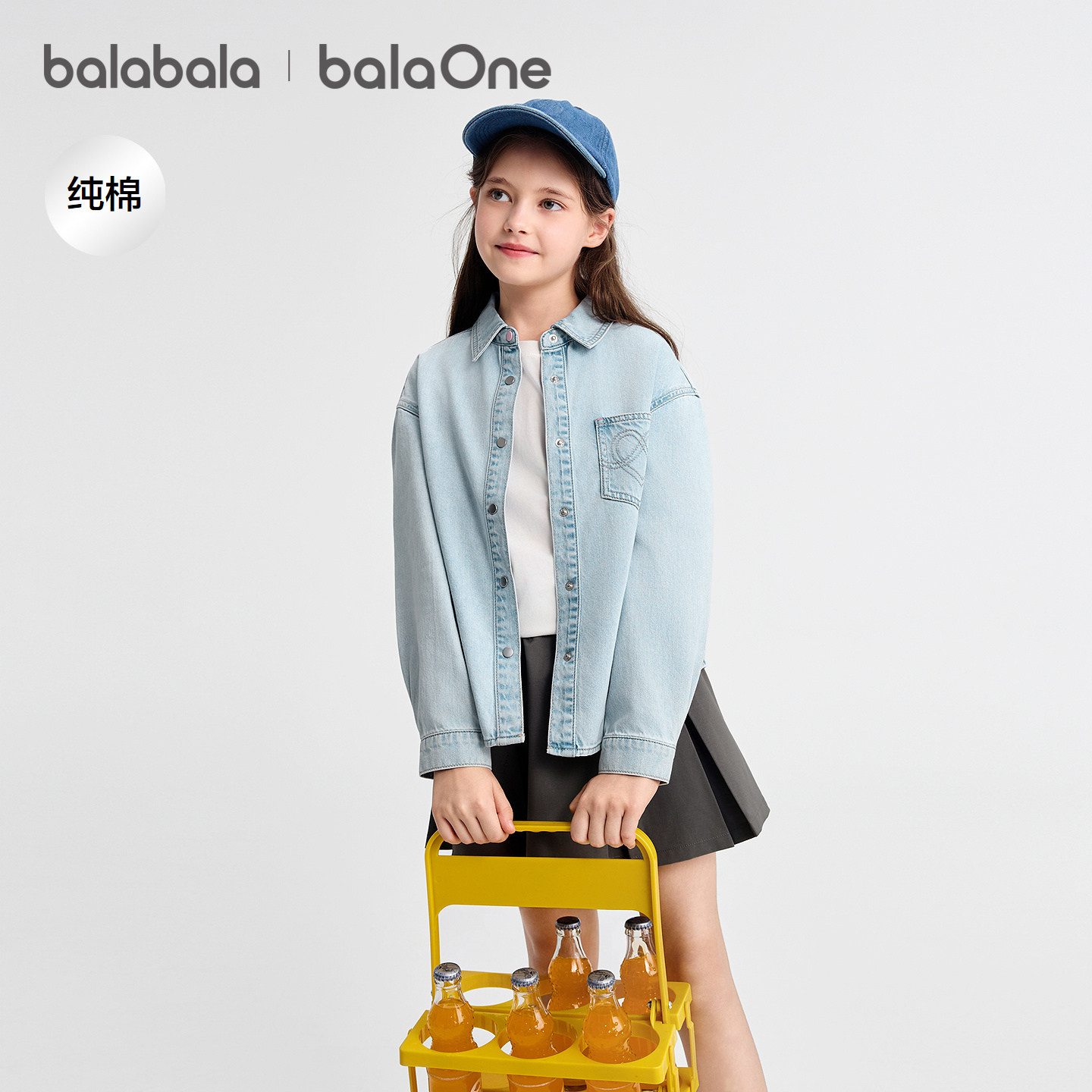 【balaOne】巴拉巴拉女童衬衫儿童长袖2026新款春全棉牛仔衫时尚