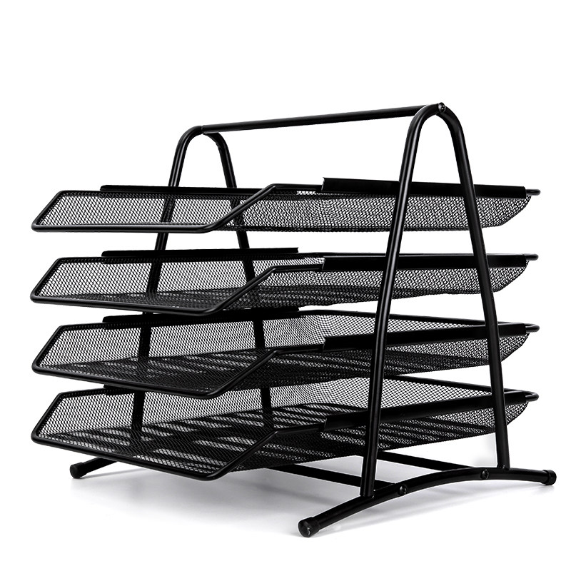 得力9184网状文件架三层四层文件座资料篮收纳框架整理置物架金属