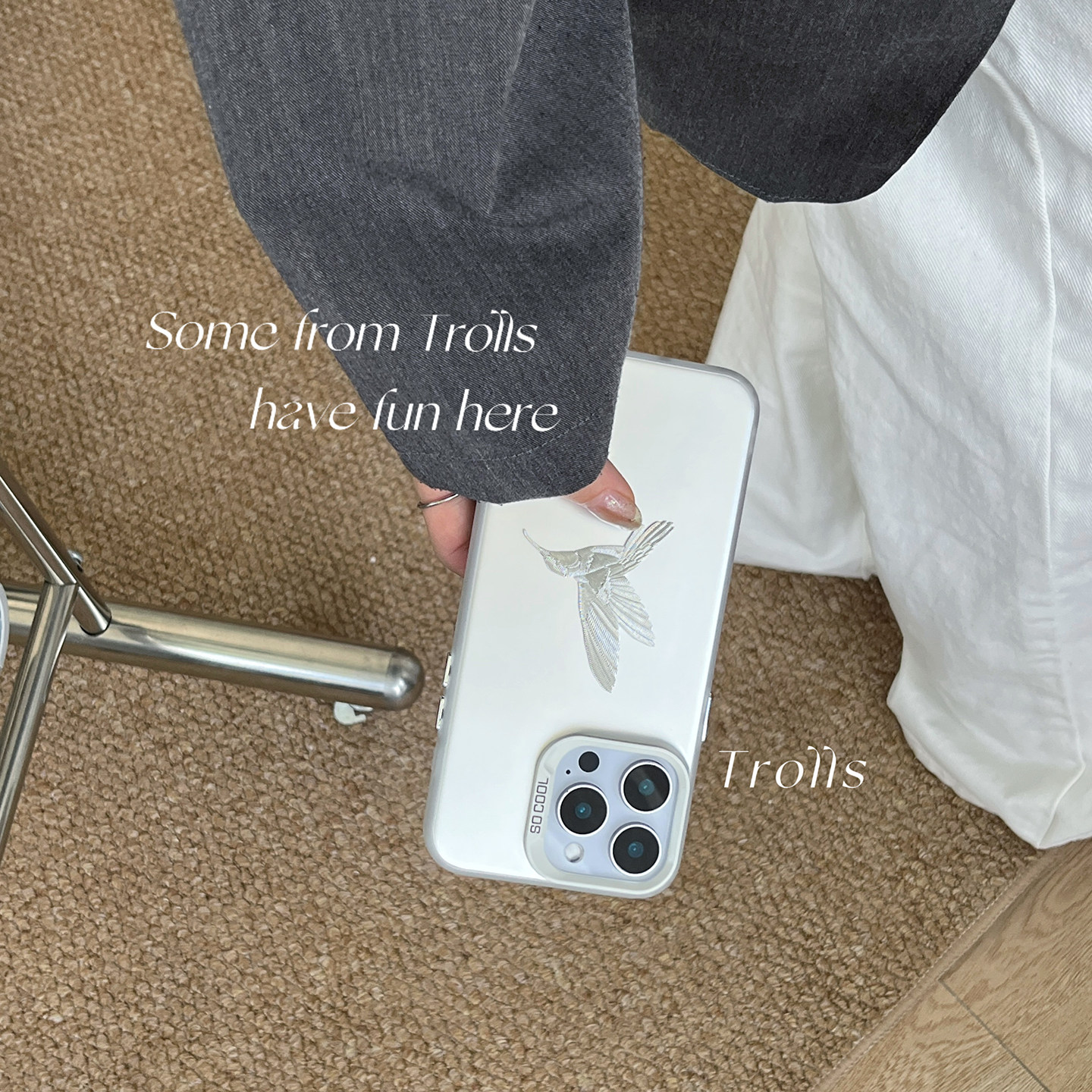 Trolls|飞鸟集 小众自制ins高级感金属银色立体飞鸟手机壳适用华为pura80Promate70小米17苹果17/oppofindx9
