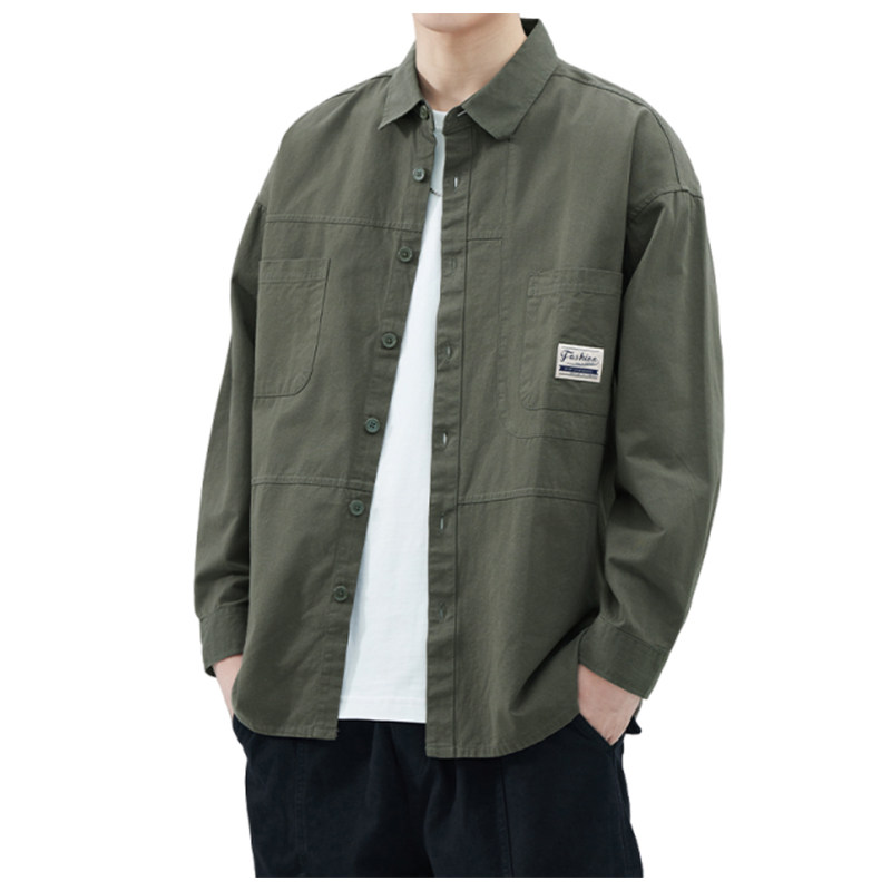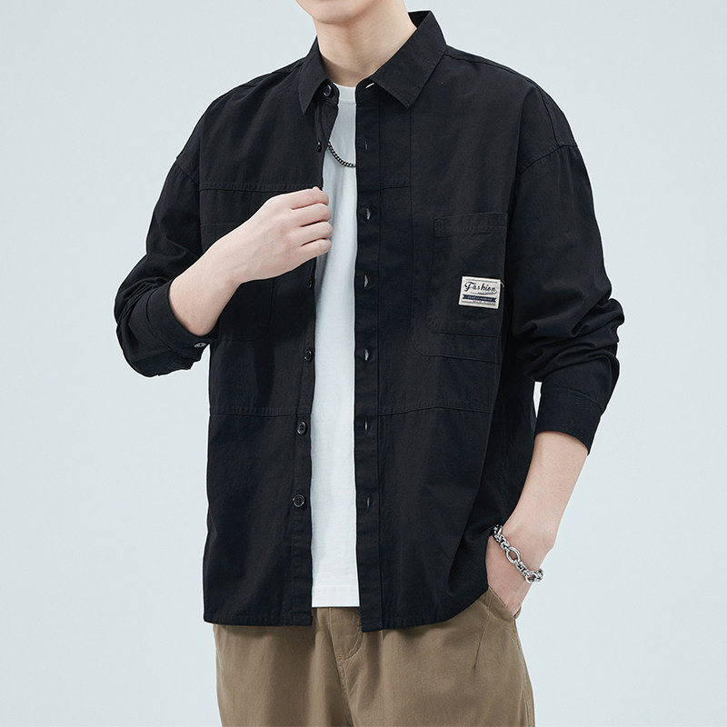 撤柜撤标(D)100%纯棉男士衬衫春秋休闲百搭宽松潮牌工装长袖衬衣