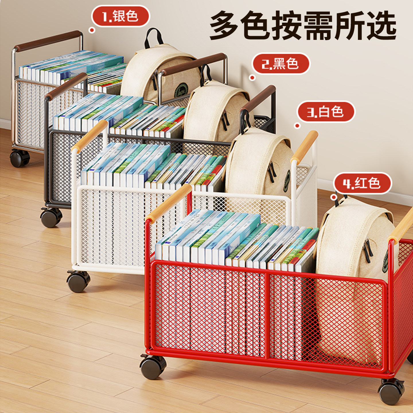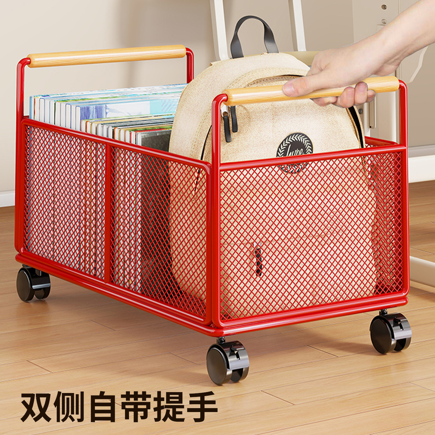 书本收纳箱大容量带轮整理箱学习桌下可移动储物箱推车书包置物