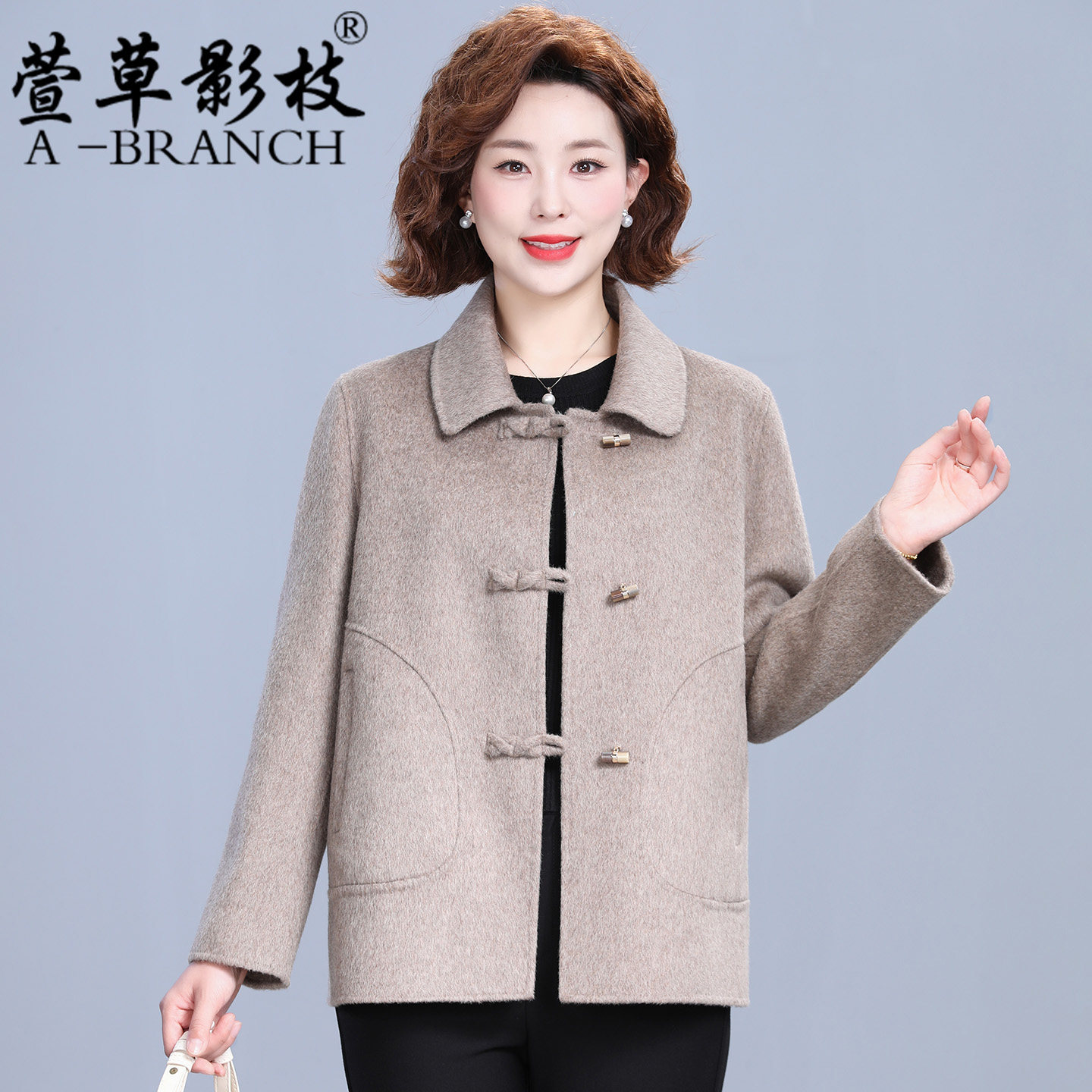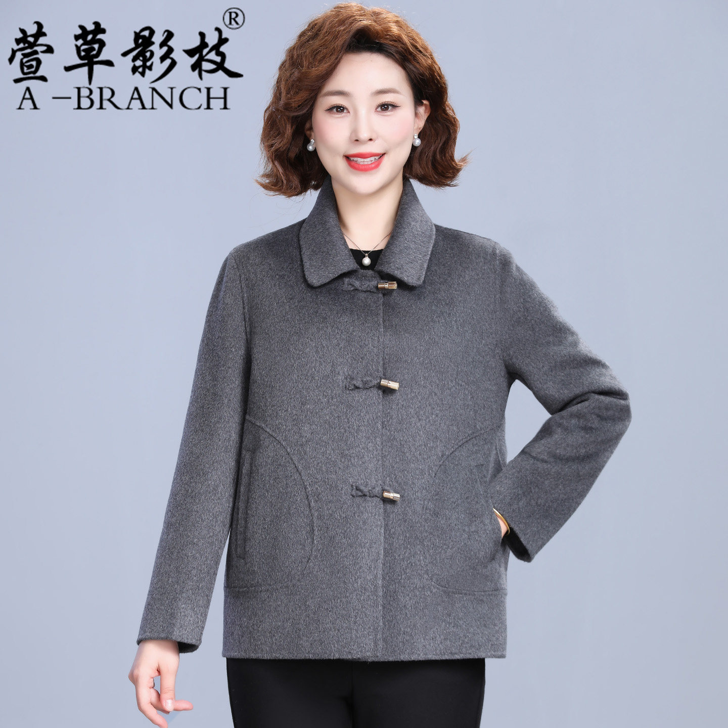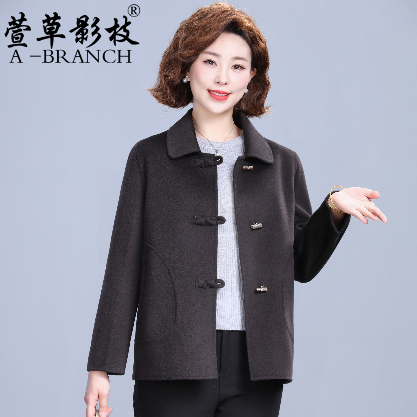 50岁妈妈装秋冬短款双面呢大衣女羊毛呢外套2025新款中老年零羊绒