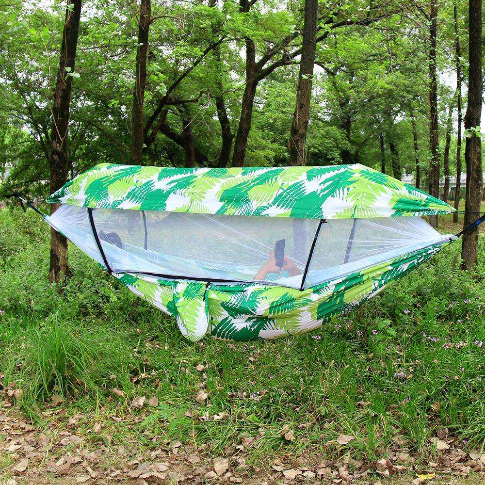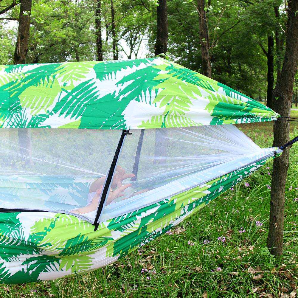 途尚游跨境户外露营吊床降落伞布防晒遮阳篷满版印花撑杆防蚊吊床
