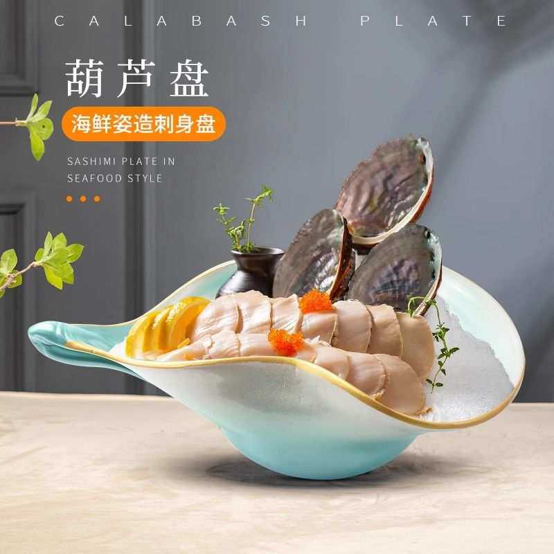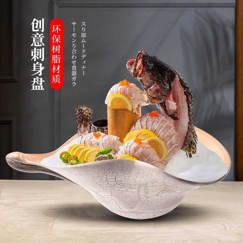 三文鱼刺身冰盘刺身盘高端海鲜盘干冰创意餐具海鲜姿造盘子火锅店