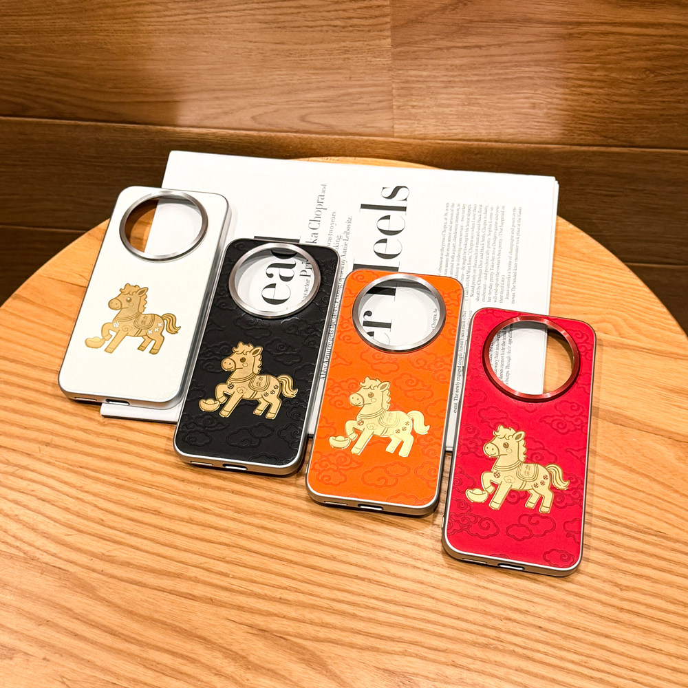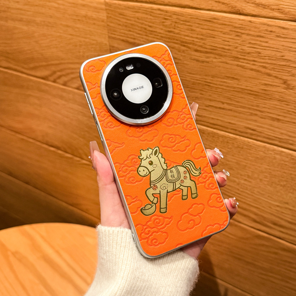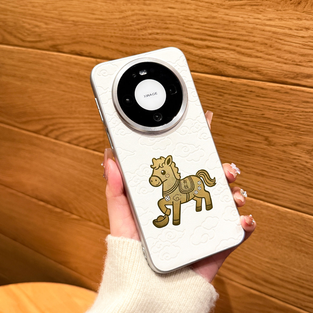 适用/华为mate80proMax手机壳 油柔金马款 柔甲素材+金属烤漆+祥云马压纹素皮+金属小马镶嵌