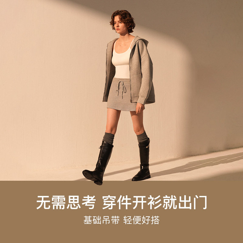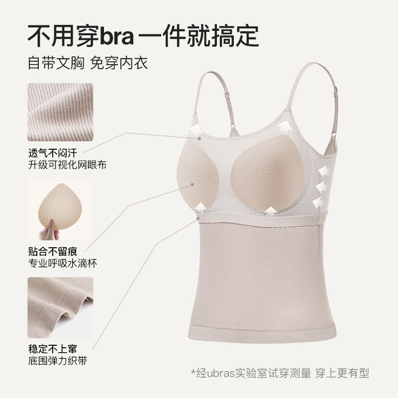ubras带杯棉感吊带背心女外穿无缝一体织挂脖上衣女老年人背心