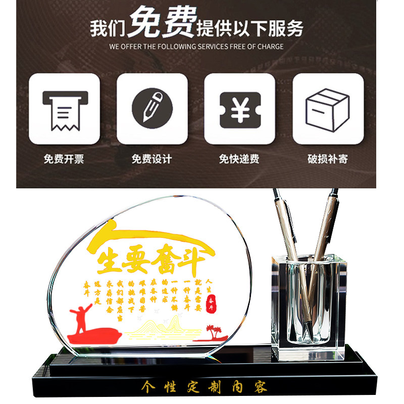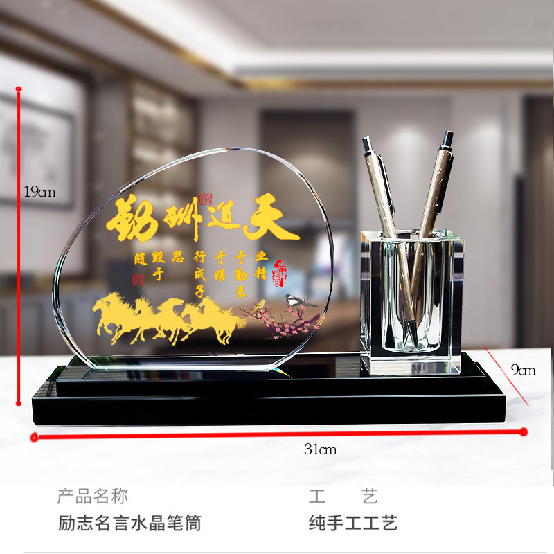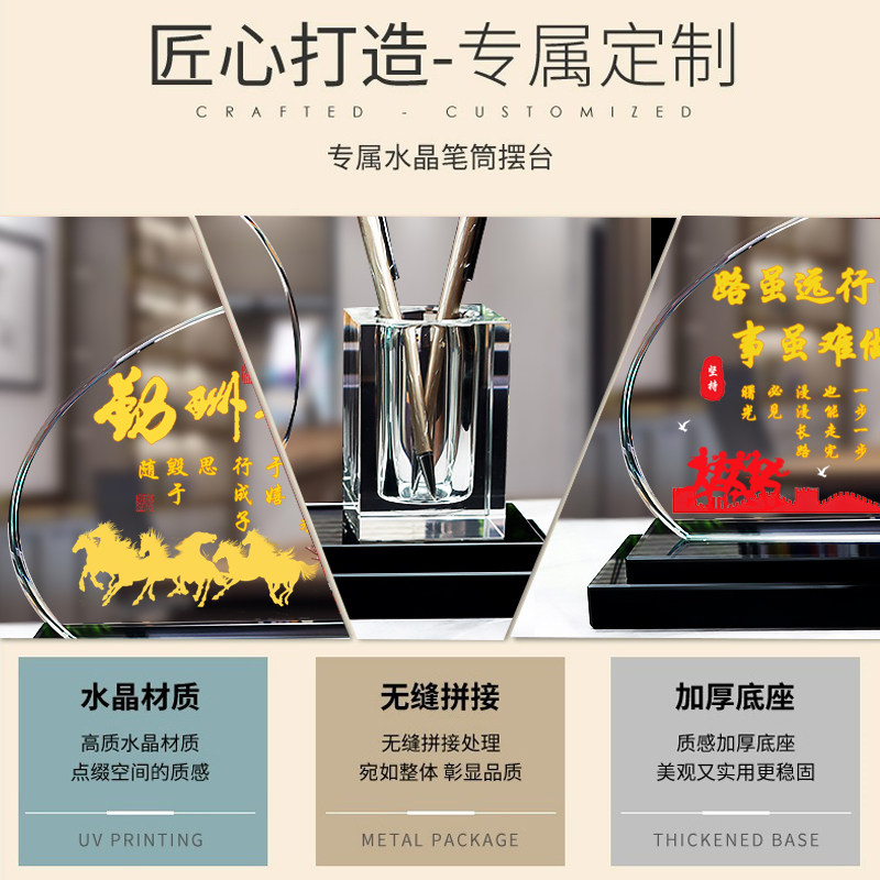 水晶笔筒摆件家居客厅房间酒柜装饰品轻奢高档办公室桌面收纳笔书柜子老师同学生意人老板乔迁新居礼物送领导